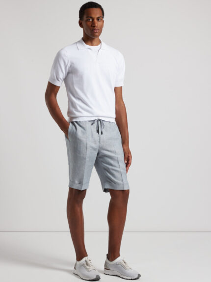 Polo shirt in pure cotton yarn knitted in two-tone honeycomb stitch, which creates a refined texture. The collar and short set-in sleeves give an elegant look.The needlecord trim on the collar and the…