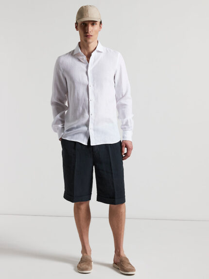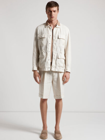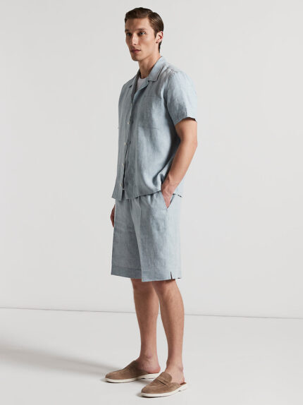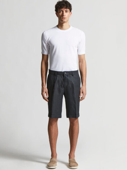 These bermuda shorts in yarn dyed linen evoke the essence of summer with their loose lines and relaxed fit. The elasticated drawstring waist ensures an adjustable fit.Breathable linen gives an immedia…