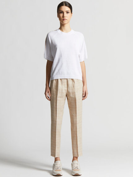 A perfect blend of tradition and summer freshness, the Prince of Wales linen trousers are the ideal garment for those seeking a refined style. The regular fit and elastic waistband offer absolute comf…