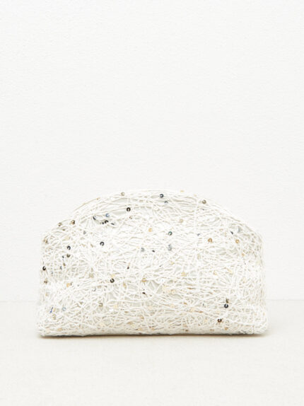 A delicate elegance takes form in this embroidered fabric clutch bag embellished with refined nappa leather inserts. The sophisticated texture combines with the softness of the materials to create an …