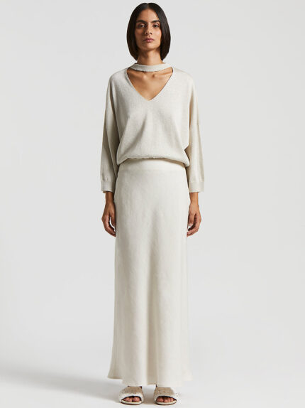 Long bias-cut skirt made of cool lightweight pure linen.. Ideal for a refined and natural style.The regular waist enhances the fit, while the side zip fastening ensures practical elegance.An essential…
