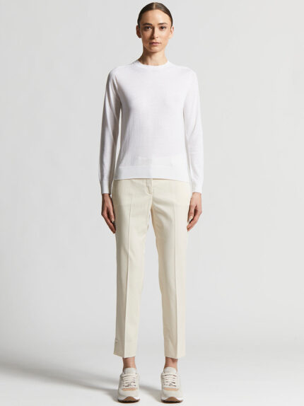 A garment that defines the figure with discretion and style. The cigarette trousers with “MF” stitching is a perfect choice for those looking for an elegant and contemporary look.Made of light stretch…