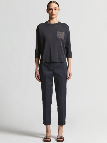 Ideal for spring, this sweater is made of fine linen and cotton yarn that ensures cool breathability.The iconic Punto Luce on the patch pocket adds a touch of bright elegance, making it versatile and …