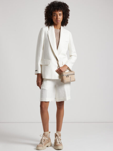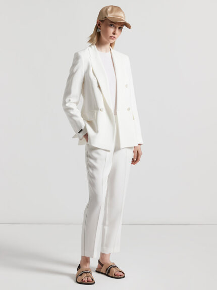 Lightness and freshness come together in these Peserico trousers in yarn-dyed herringbone linen and viscose, a material that perfectly expresses its characteristics, creating a unique texture.The garm…