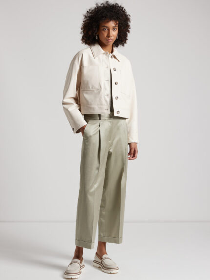 A masterpiece of style and craftsmanship, this short trench coat in soft lambskin leather elevates the concept of contemporary luxury.The classic double-breasted design and lapel collar combine with a…
