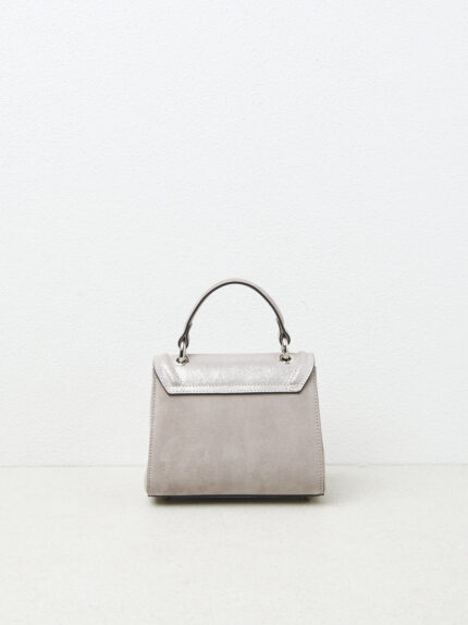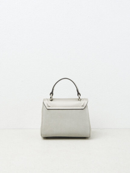 Simple elegance defines this mini-handbag, where the refined contrast in materials combines with Punto Luce details.Punto Luce chain with Peserico logo illuminates the design with a discreet but spark…