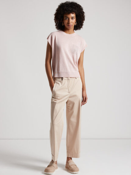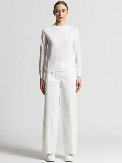 These straight trousers, made of lightweight combed stretch cotton gabardine, offer an elegant and fluid fit with a regular waist that defines the line.The special processing of combed cotton gives th…