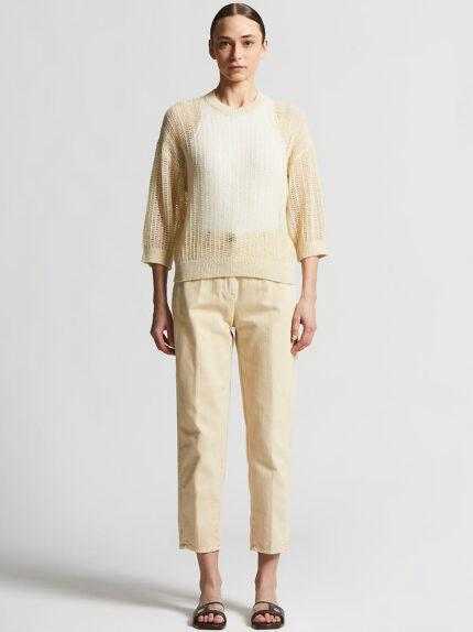 Perfect for intermediate seasons, this lightweight alpaca yarn sweater is distinguished by a perforated herringbone knit that conveys an aura of light modernity to the garment.Lurex adds brilliance, c…