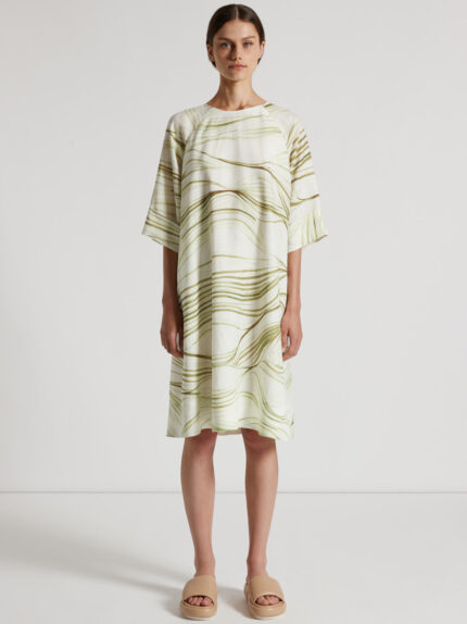 Made of printed linen and cotton, this midi dress is perfect for those who seek a cool sophisticated look. The crew-neck design and short raglan sleeves with turn back cuffs add a casual-chic touch.Th…