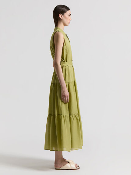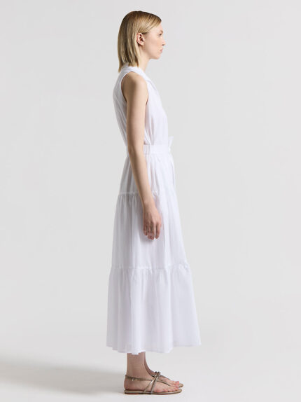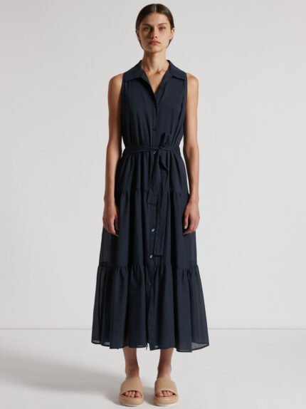 Made of lightweight pure cotton voile, this long dress is characterised by its understated elegance. The sleeveless design with collar lends a fresh touch.The visible button fastening lends a casual e…