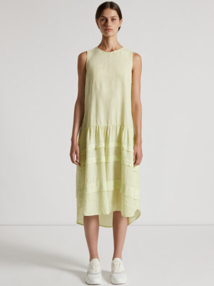 Timeless elegance takes shape in these pure linen gabardine palazzo trousers, where stitched pleats add a discreet sartorial touch.The loose fit glides gracefully over the figure, while in-seam side p…