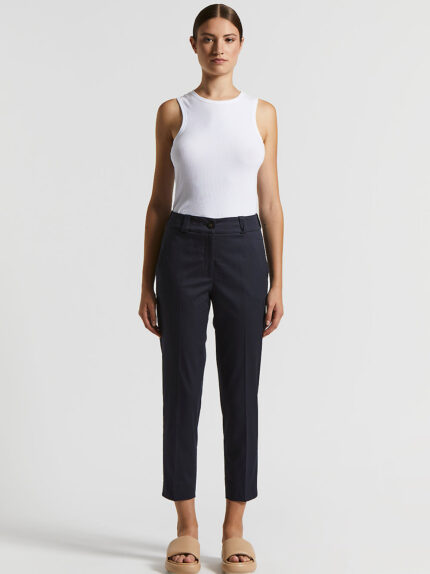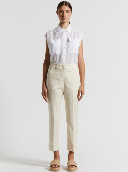 Simple and sophisticated, these trousers in light stretch cotton satin feature a regular fit that expresses discreet elegance.The elasticated back waist adds a touch of comfort, while the regular wais…