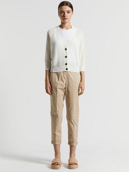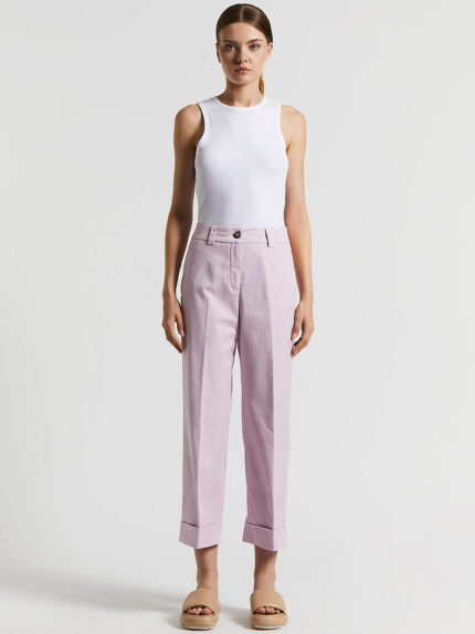 Casual elegance takes shape in these trousers in light stretch cotton lyocell, garment dyed for a unique, refined effect.The central pintuck and relaxed fit create a perfect balance of comfort and sty…