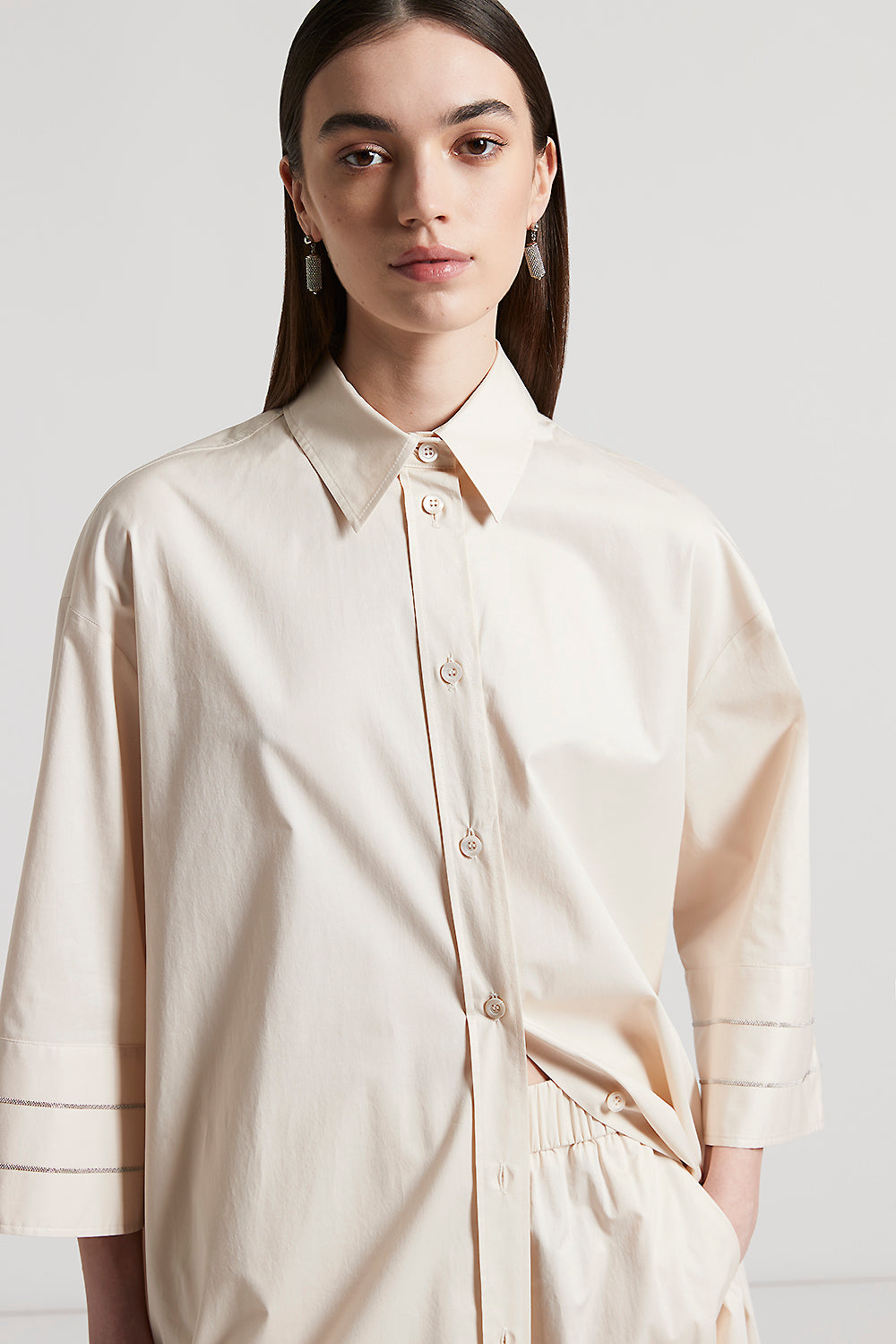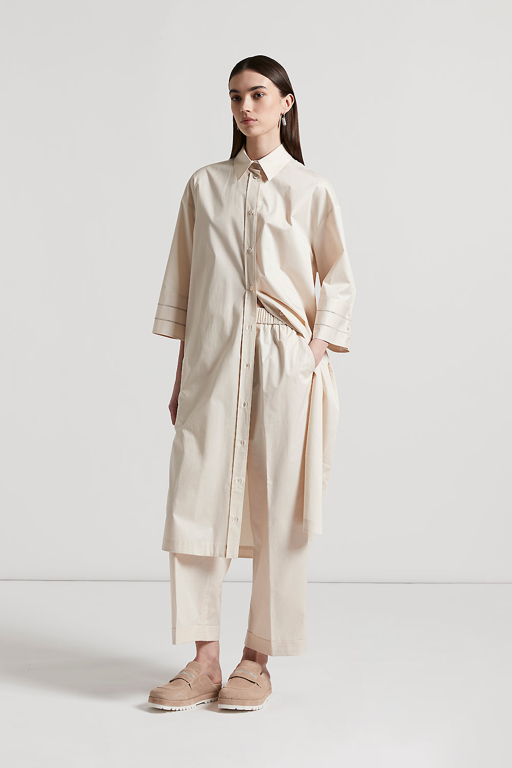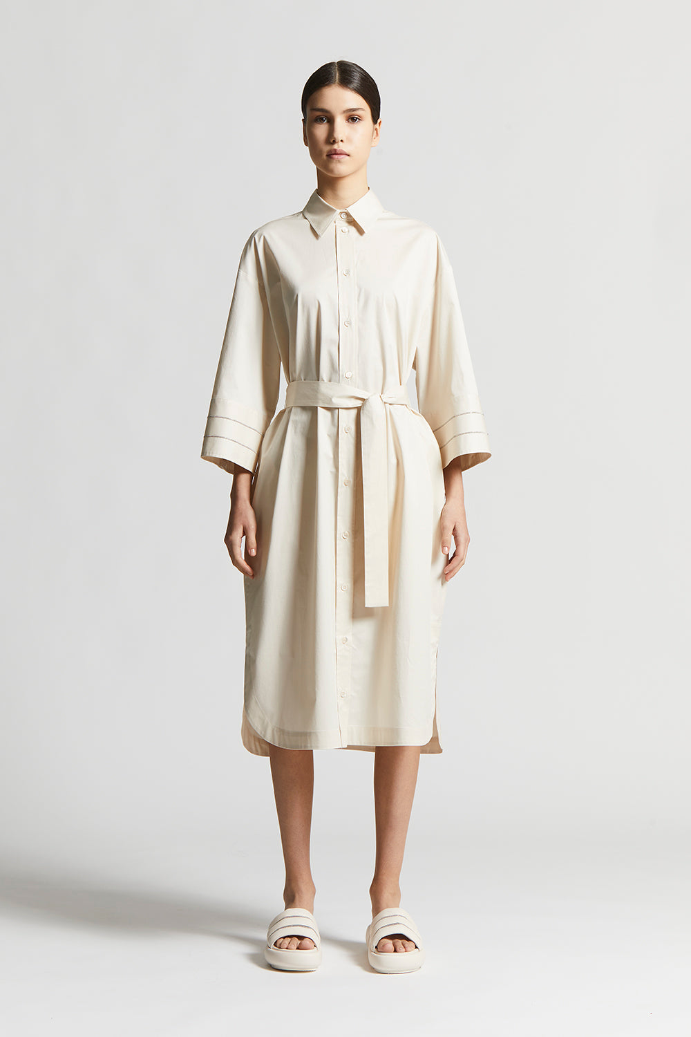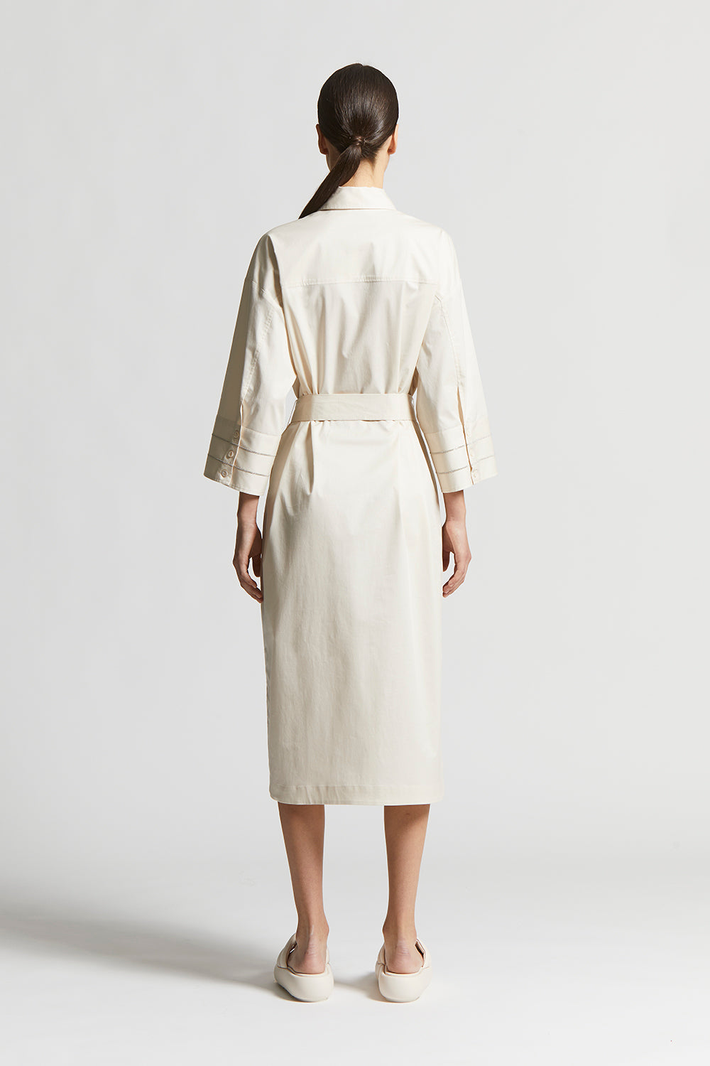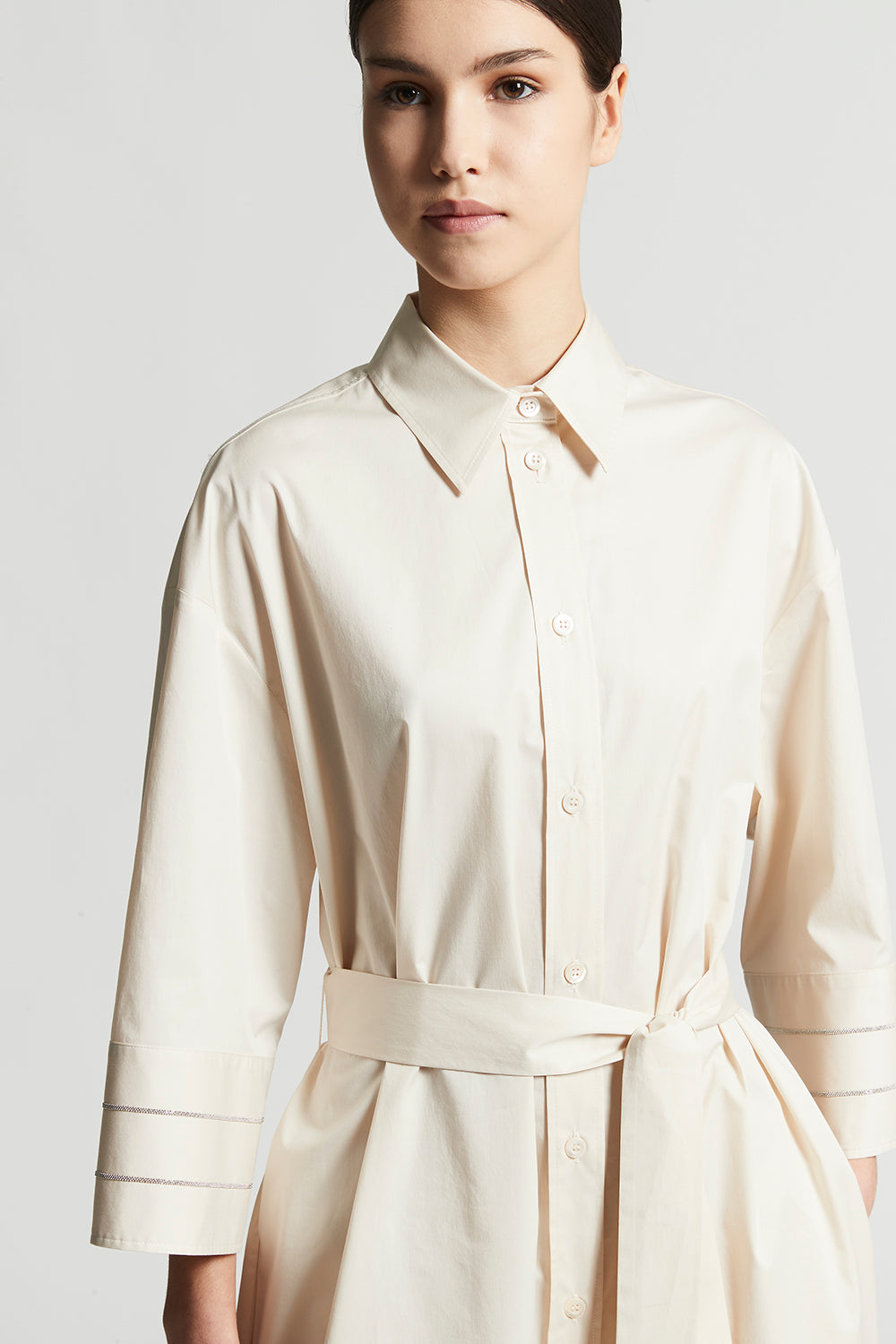 Peserico – Chemisier dress in light stretch cotton satin – Quartz sand