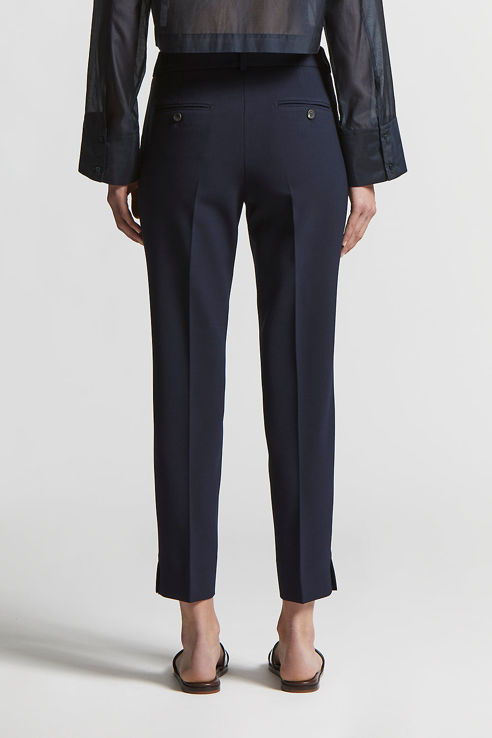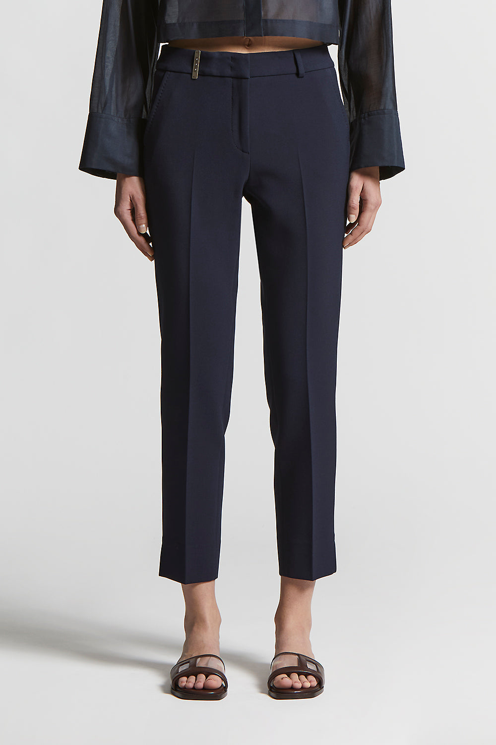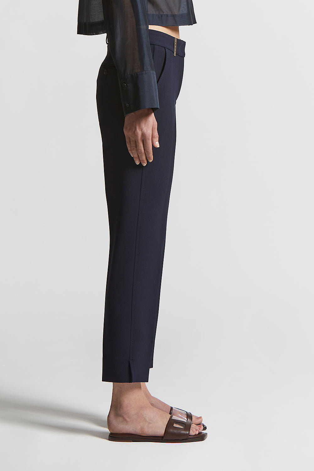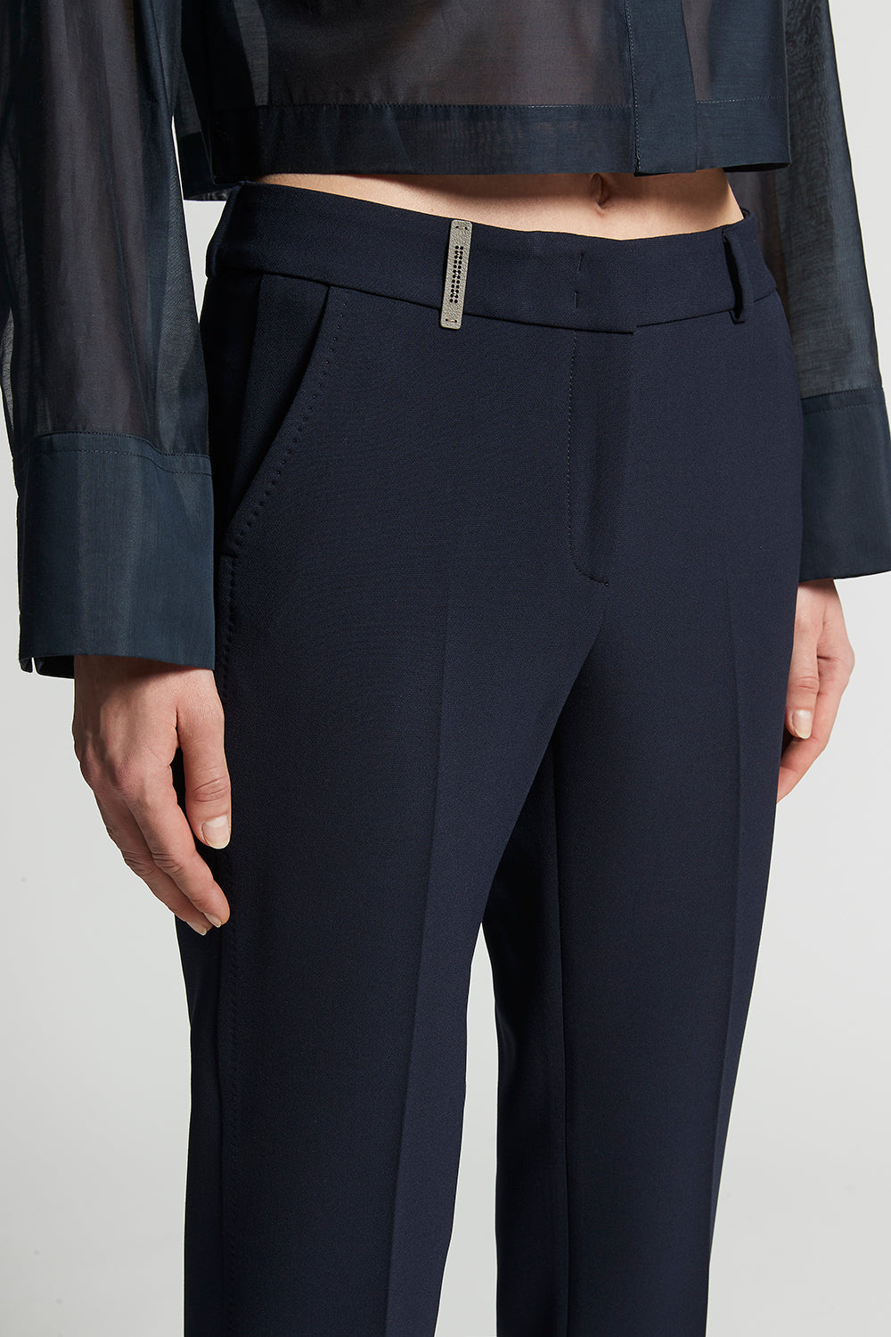 A garment that defines the figure with discretion and style: the cigarette trousers with “MF” stitching is a perfect choice for those looking for an elegant and contemporary look.