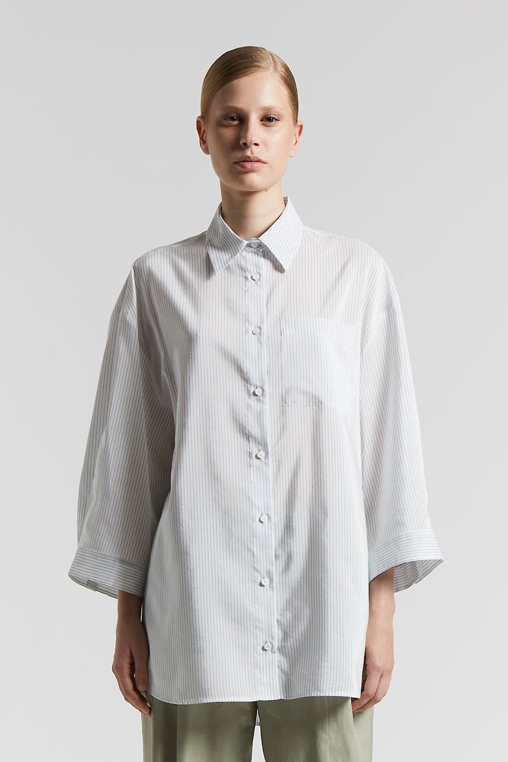 This shirt is ideal to wear with slim trousers or flowing skirts, creating contemporary and classy outfits for every occasion.