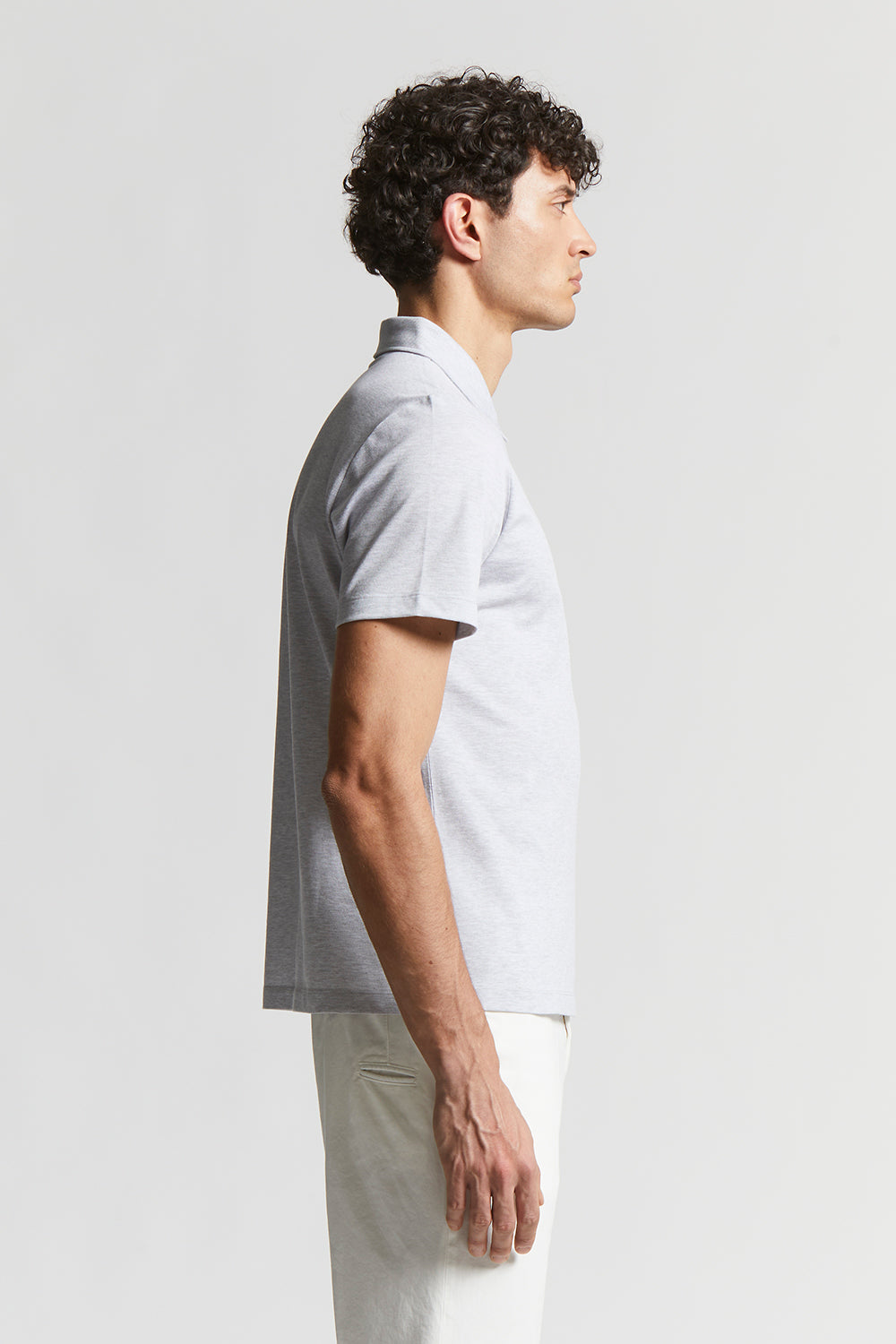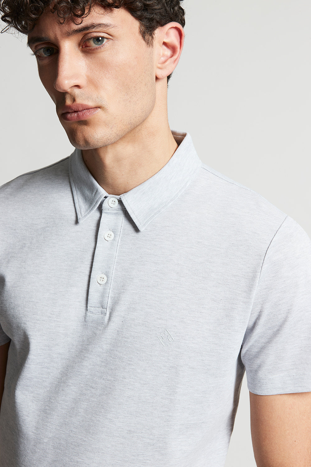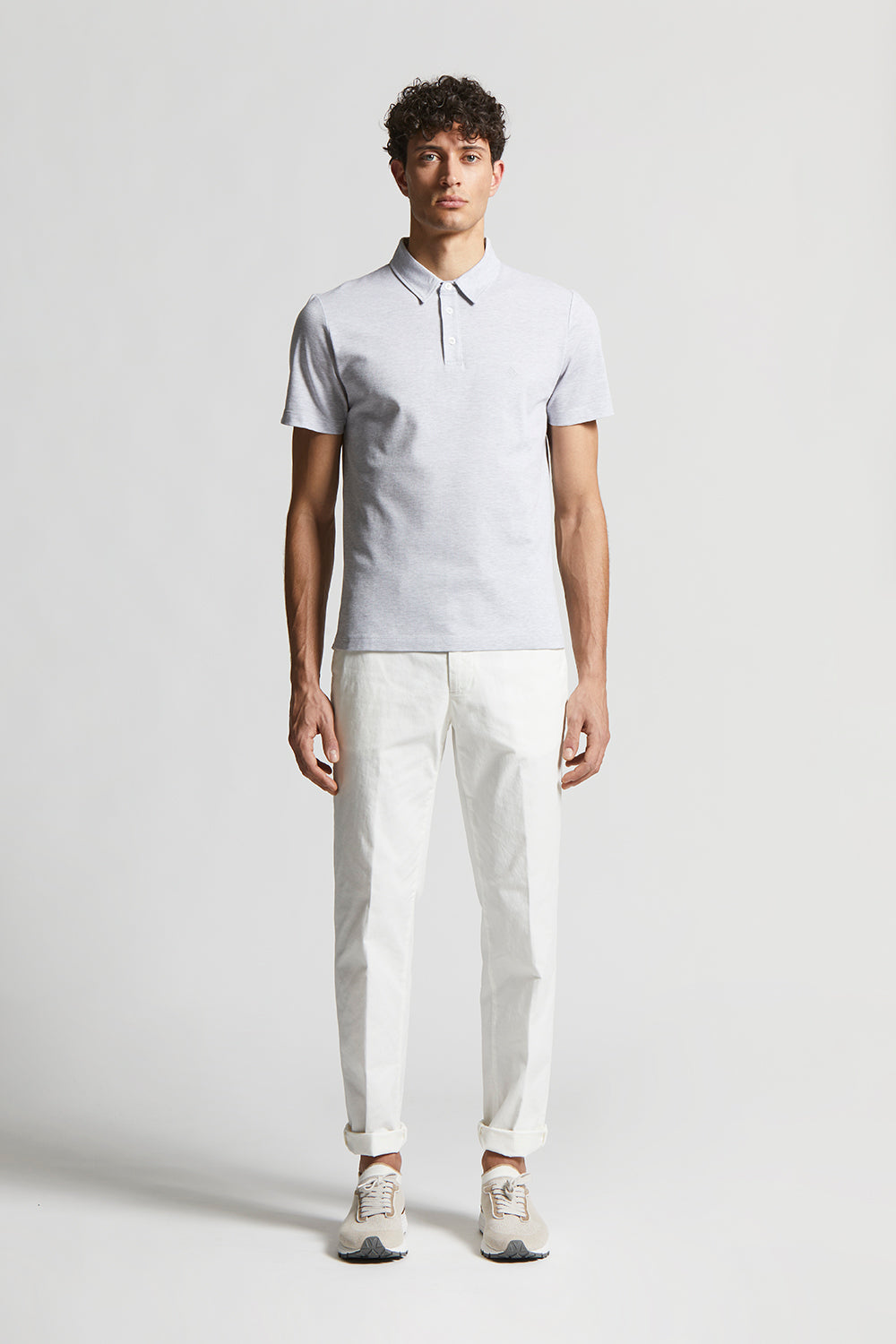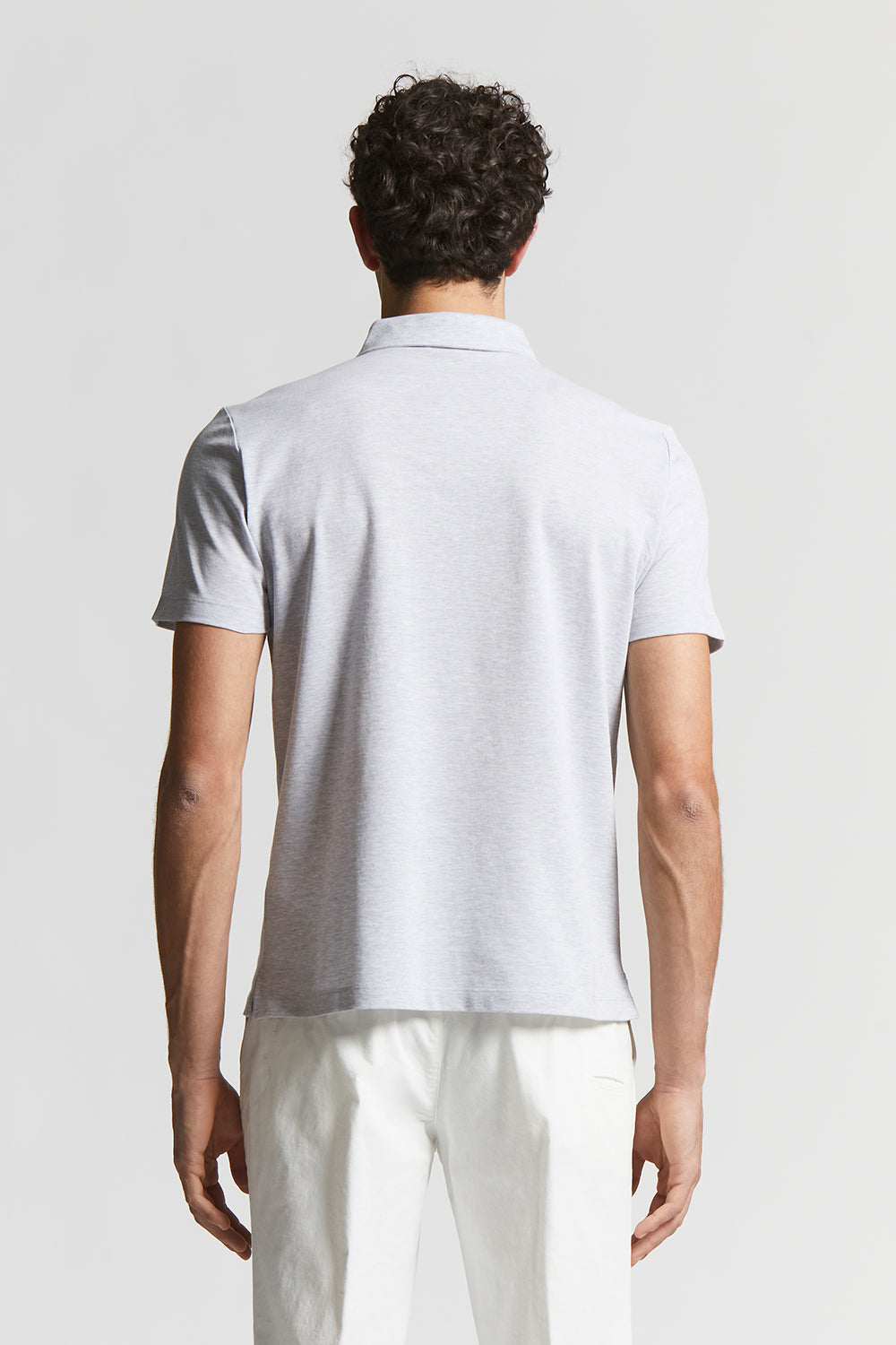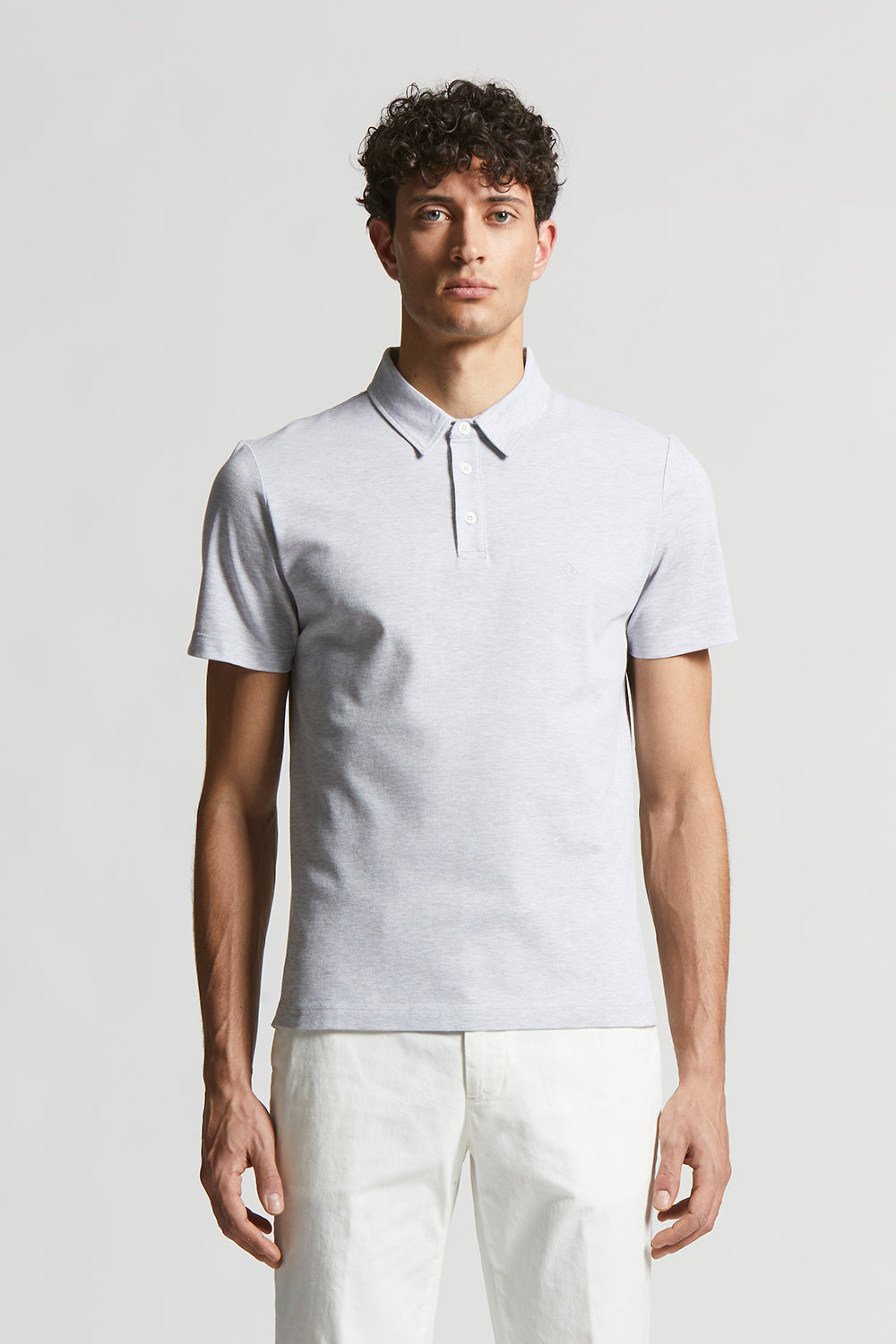 Classic and elegant, this three-button-fastening polo shirt is made of lightweight pure cotton melange jersey piqué. Ideal for spring and summer.