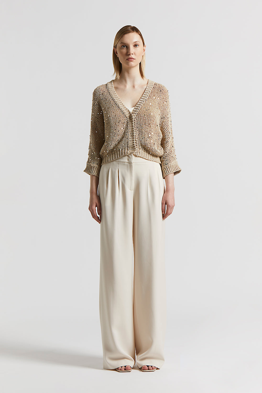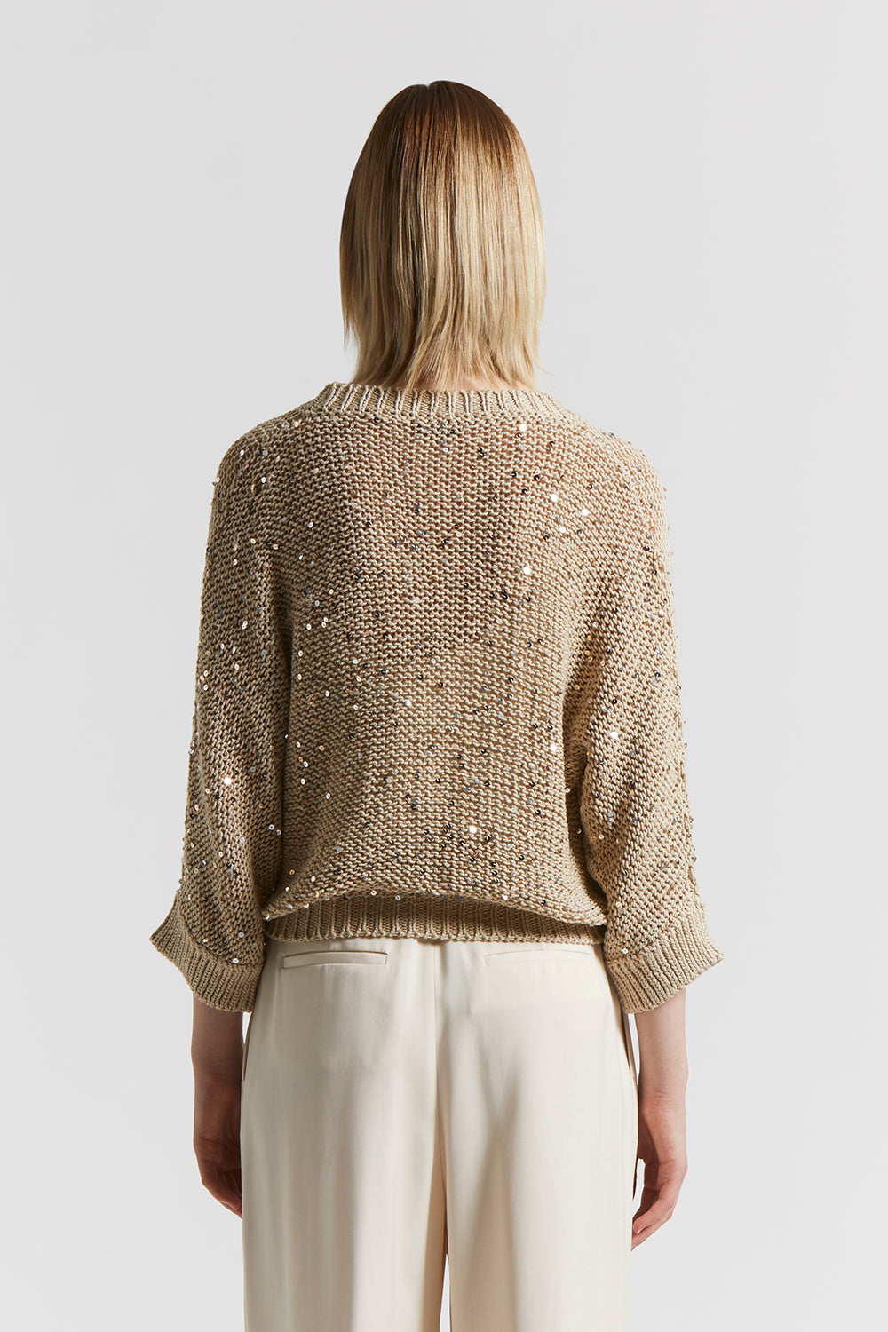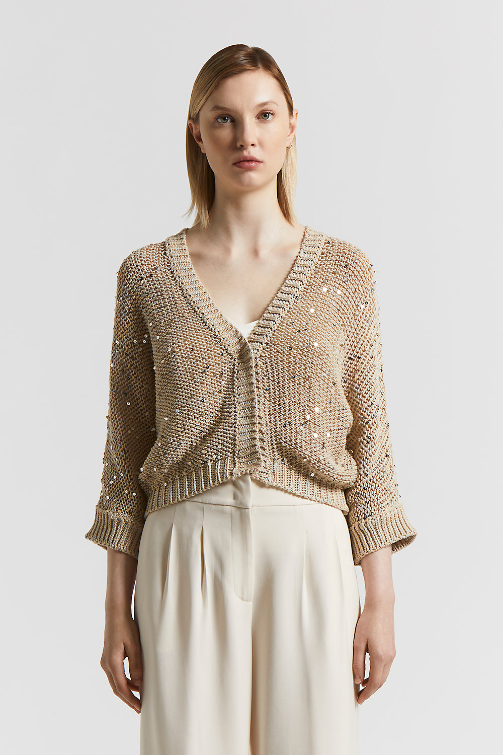 Peserico – Cotton ribbon cardigan with maxi sequins – Amber Beige
