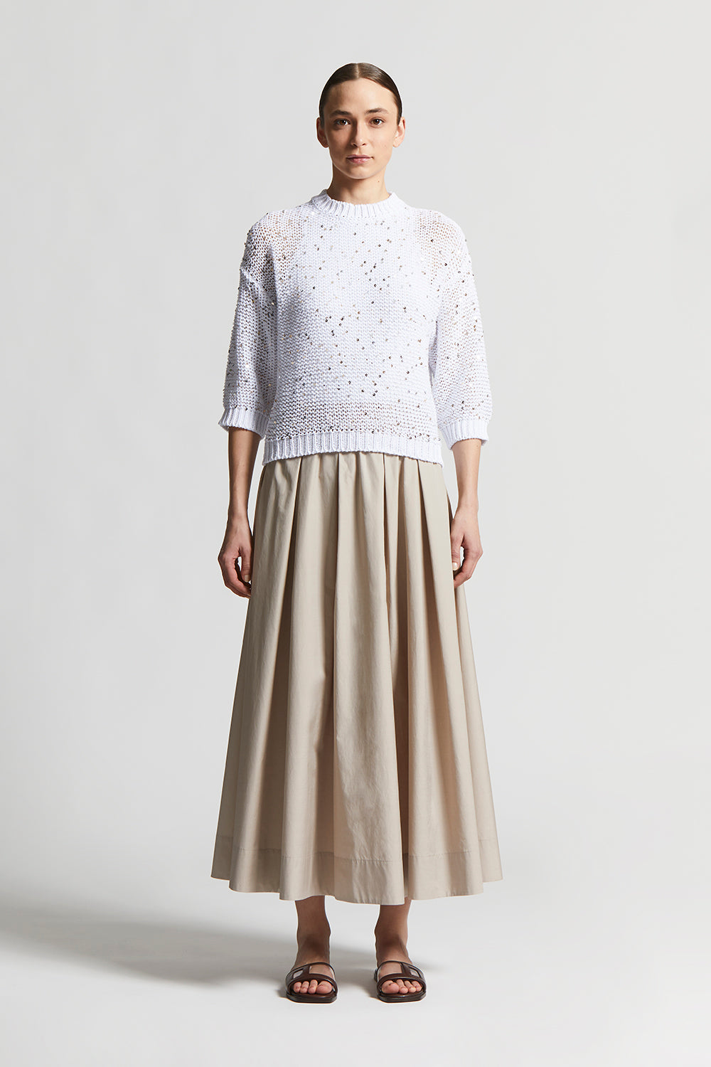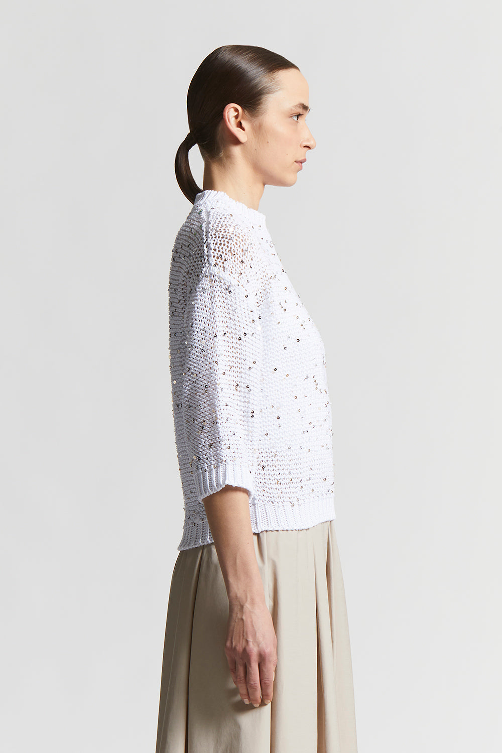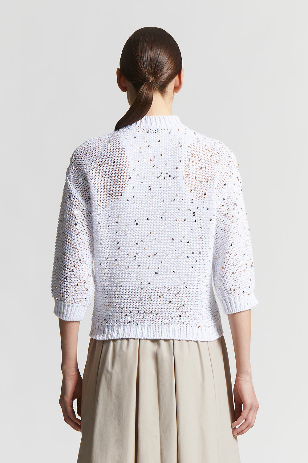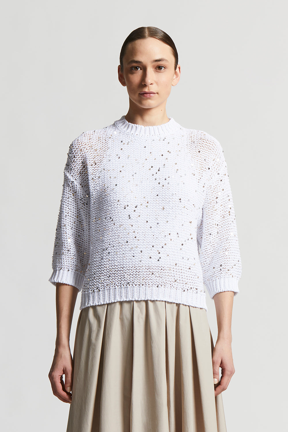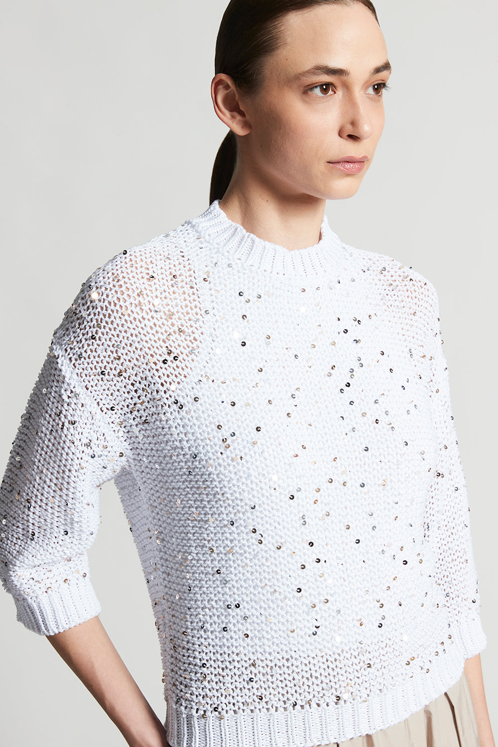 Peserico – Cotton ribbon sweater with sequins – Pure White