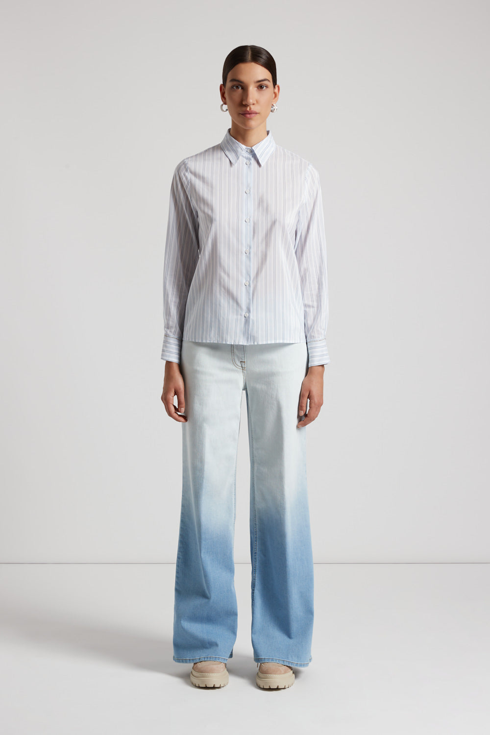 This shirt perfectly combines comfort and contemporary style. Ideal to wear either with tailored trousers for a formal look or with jeans for a casual-chic style.