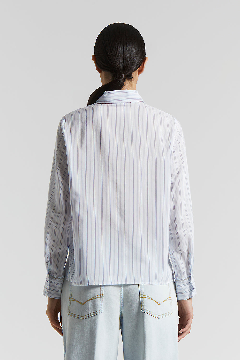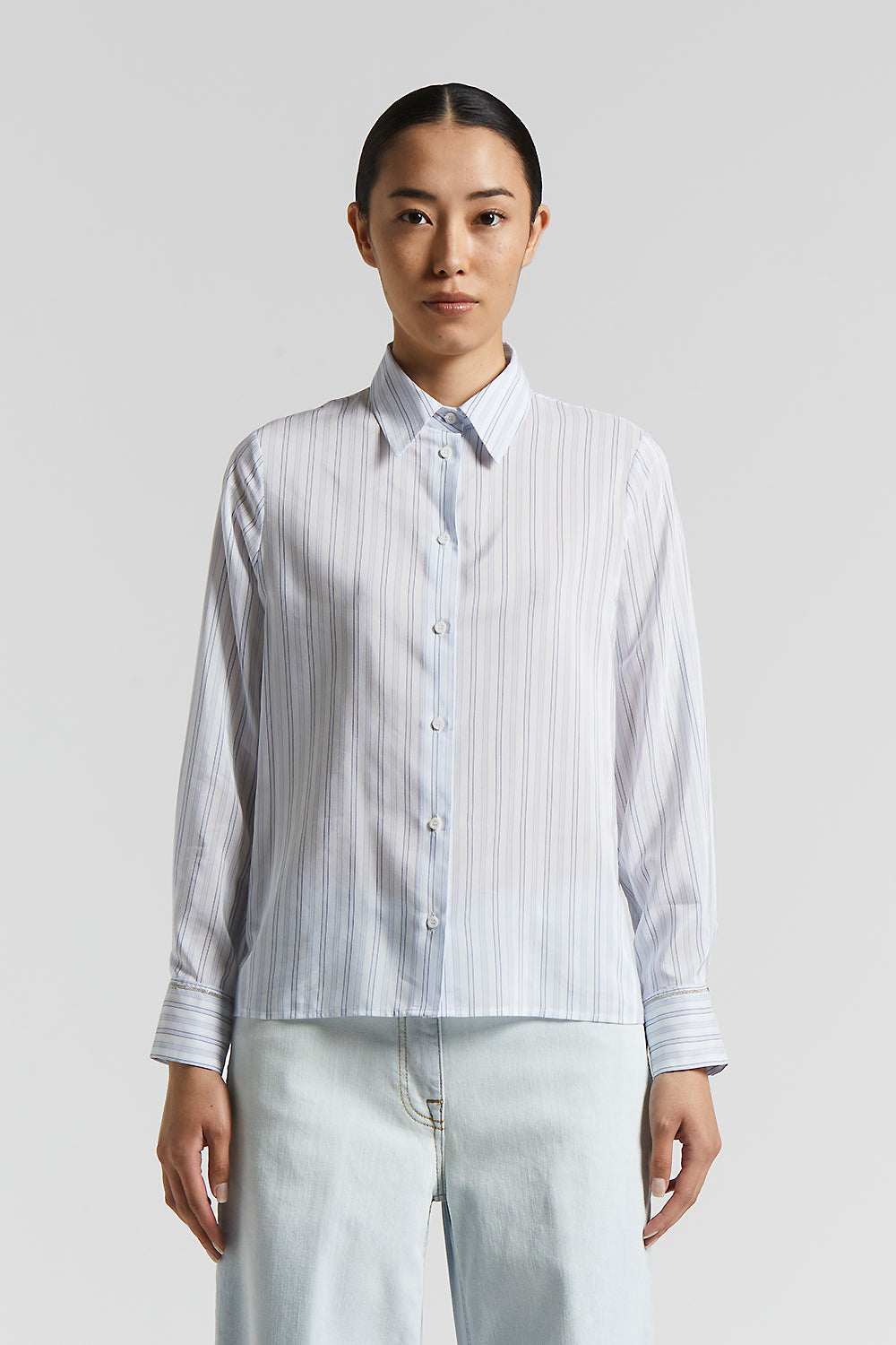 Peserico – Cotton silk habotai multi-striped shirt – Atmosphere blue
