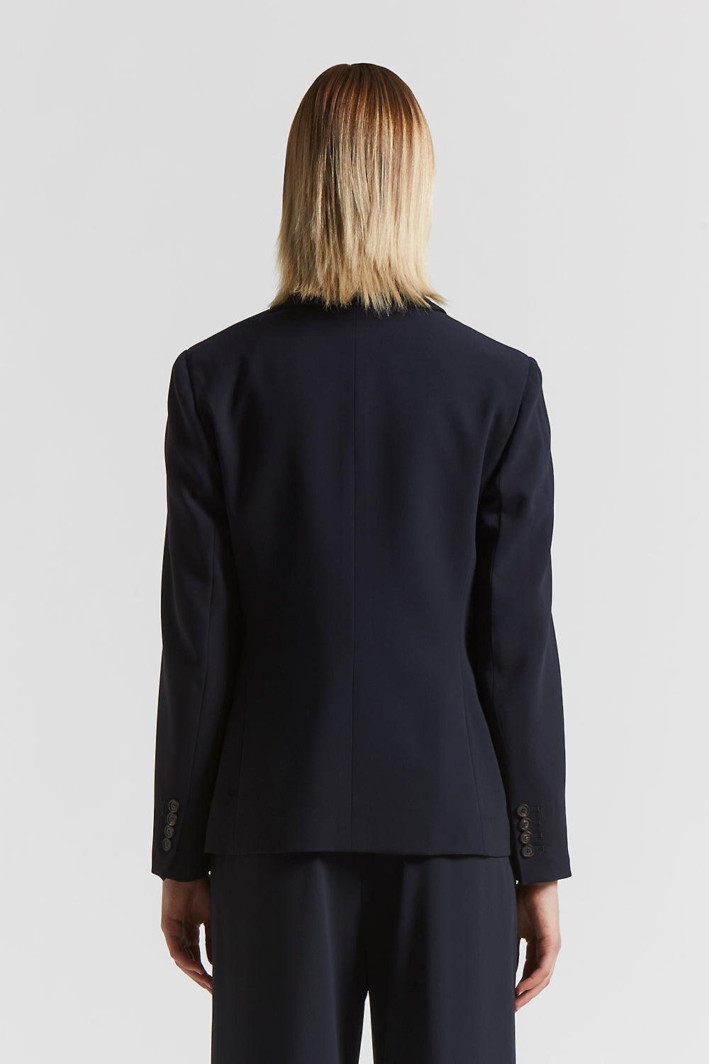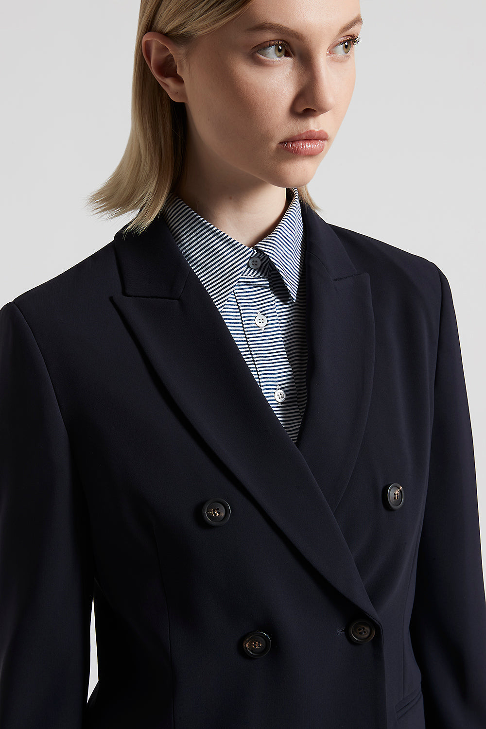 Sleek elegance takes shape in this double-breasted blazer, where the purity of technical crepe cady meets precise tailoring.