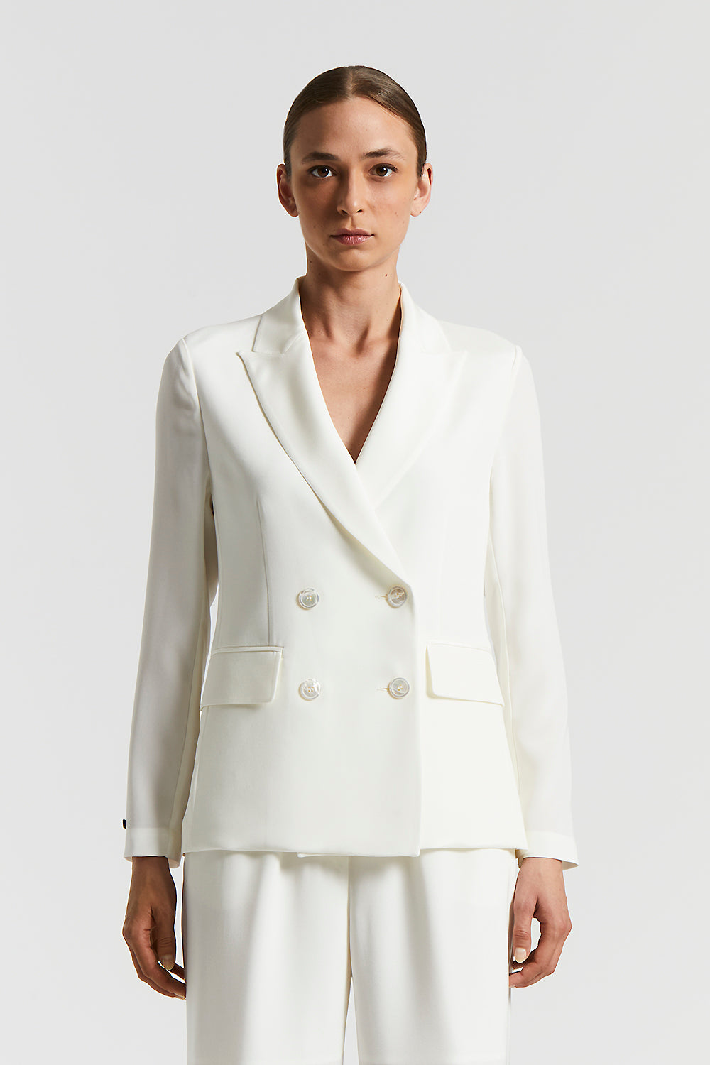 Peserico – Double-breasted blazer in crepe de chine – Cloud white