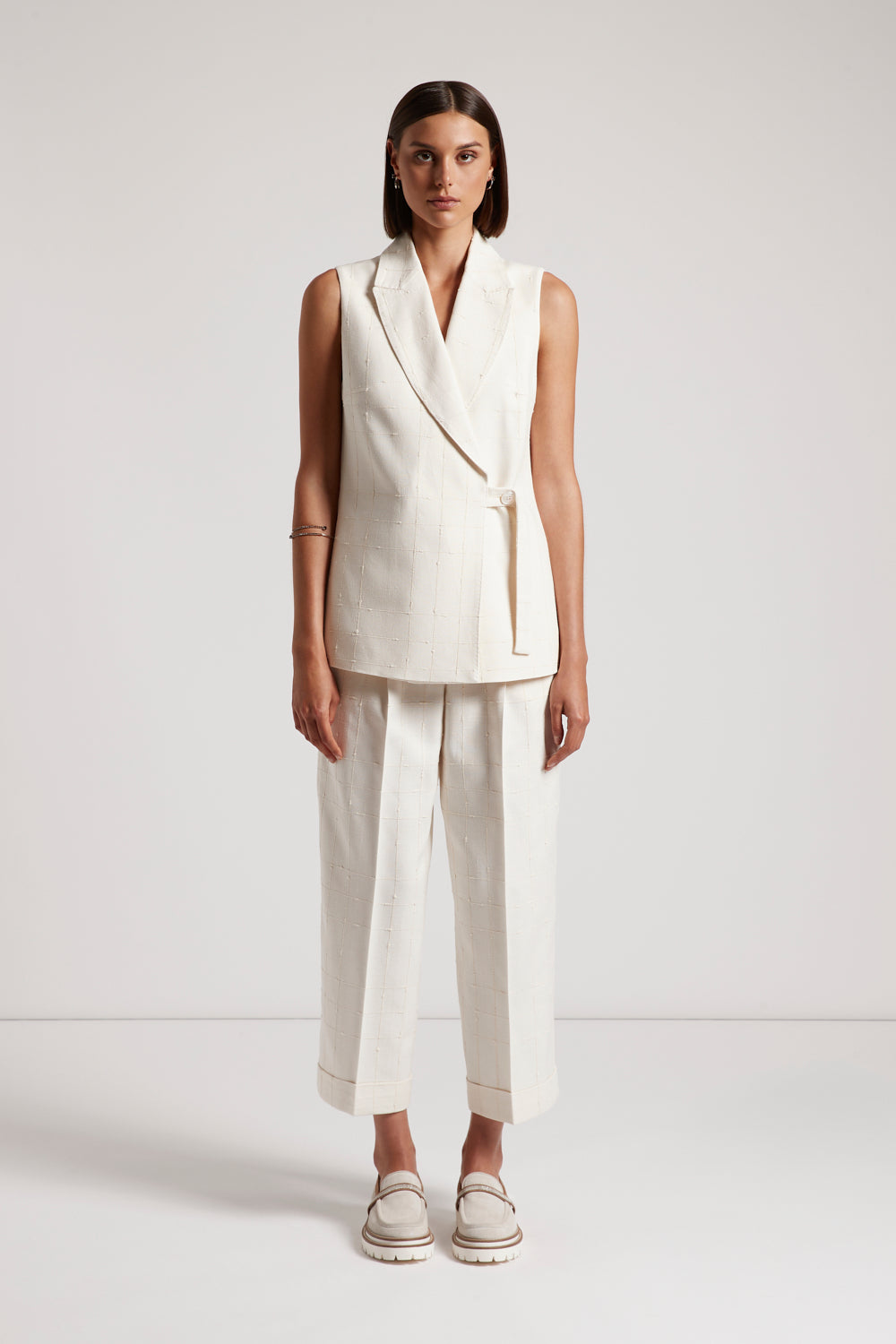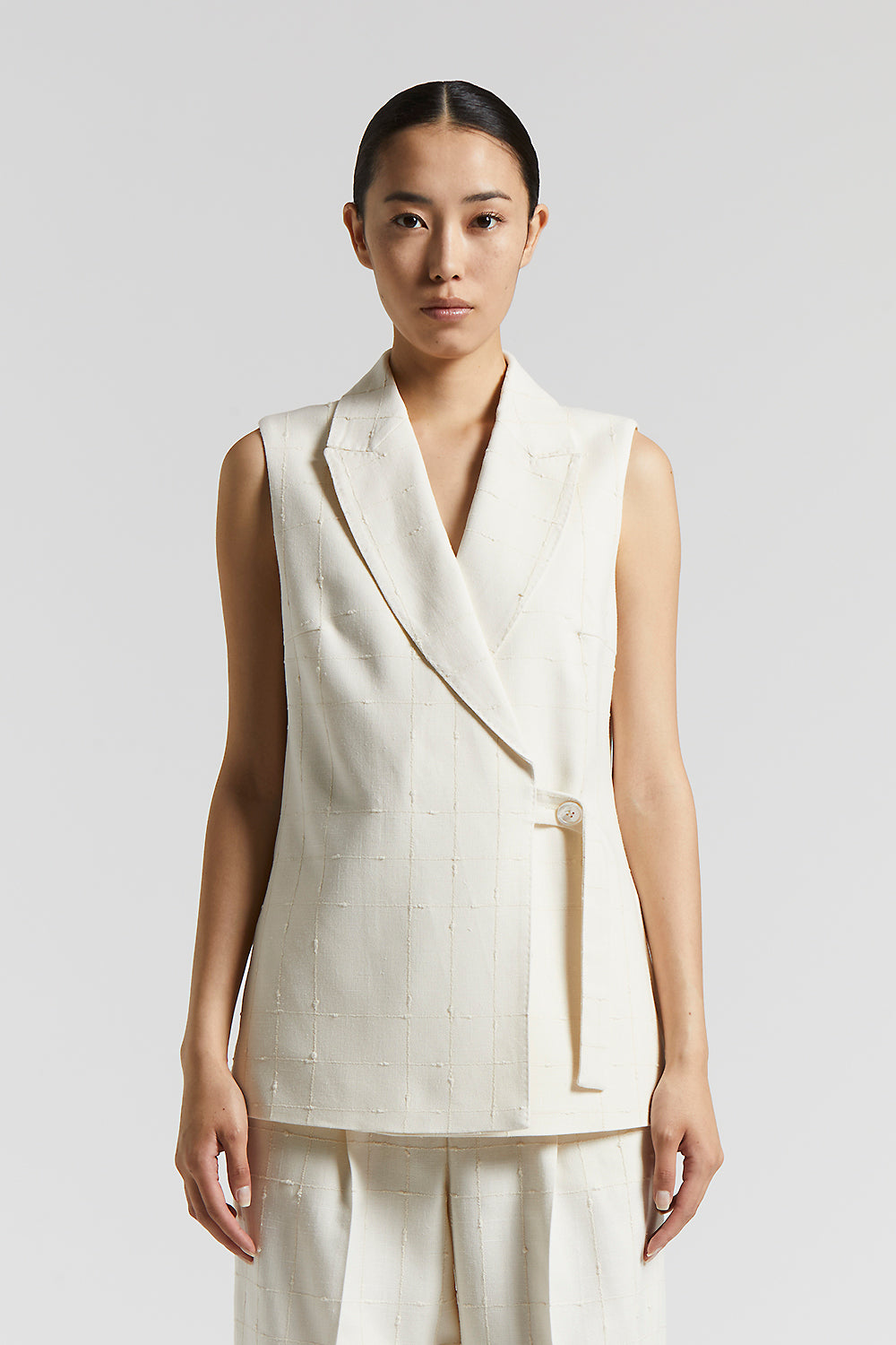 Peserico – Double-breasted waistcoat in stuoia weave with bouclé motif – Cloud white