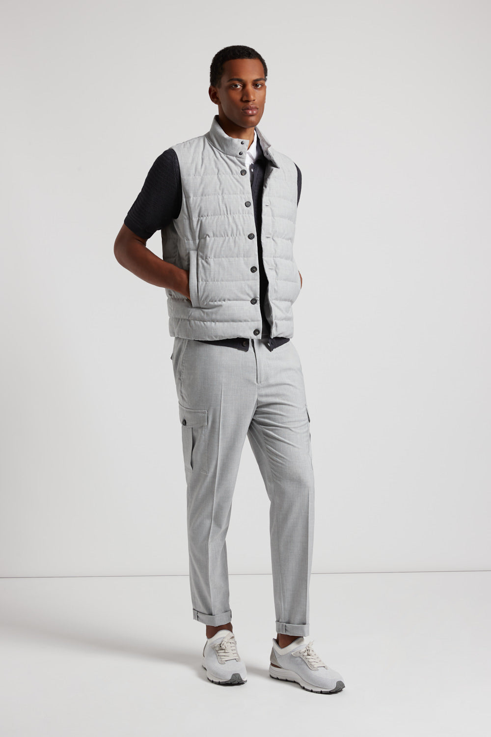 Peserico – Down waistcoat and technical viscose – Lunar gray