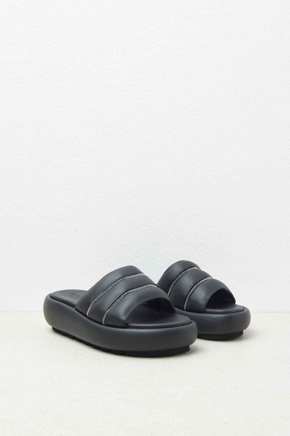 Peserico – Embossed chunky leather slippers – Black