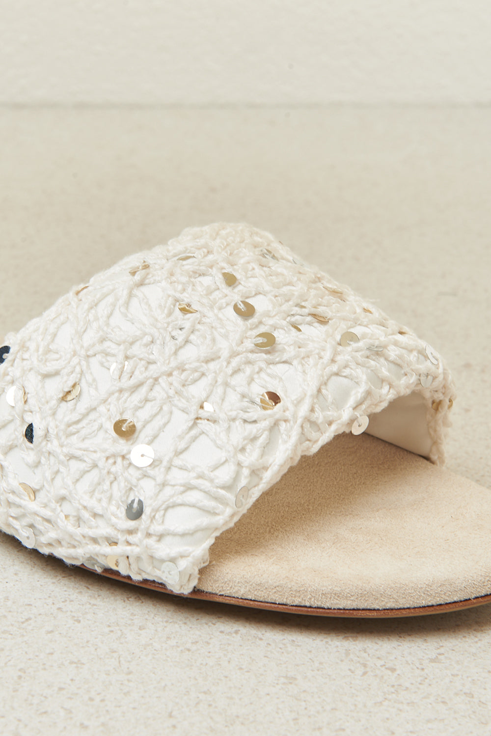 The minimalist design embellished with embroidery and sequins makes these slippers perfect to add elegance to any look.