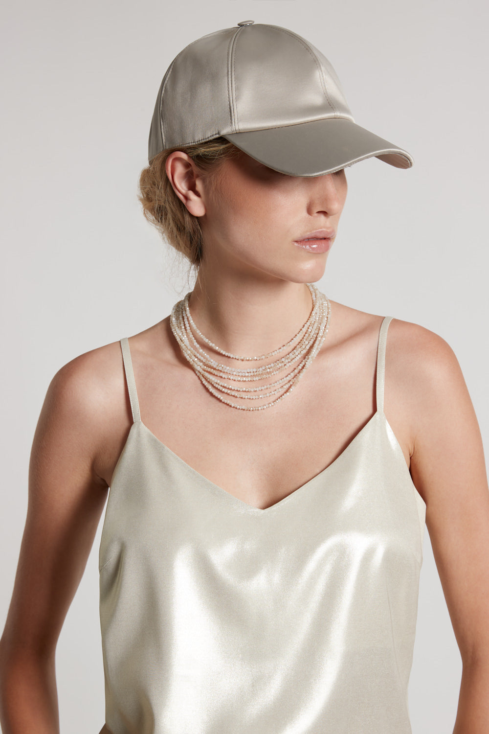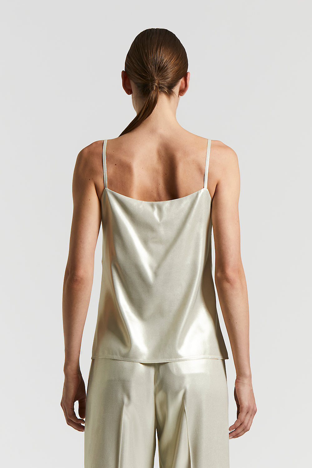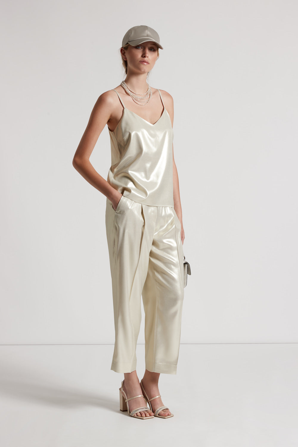 Peserico – Flowing laminated viscose twill top – Quartz sand