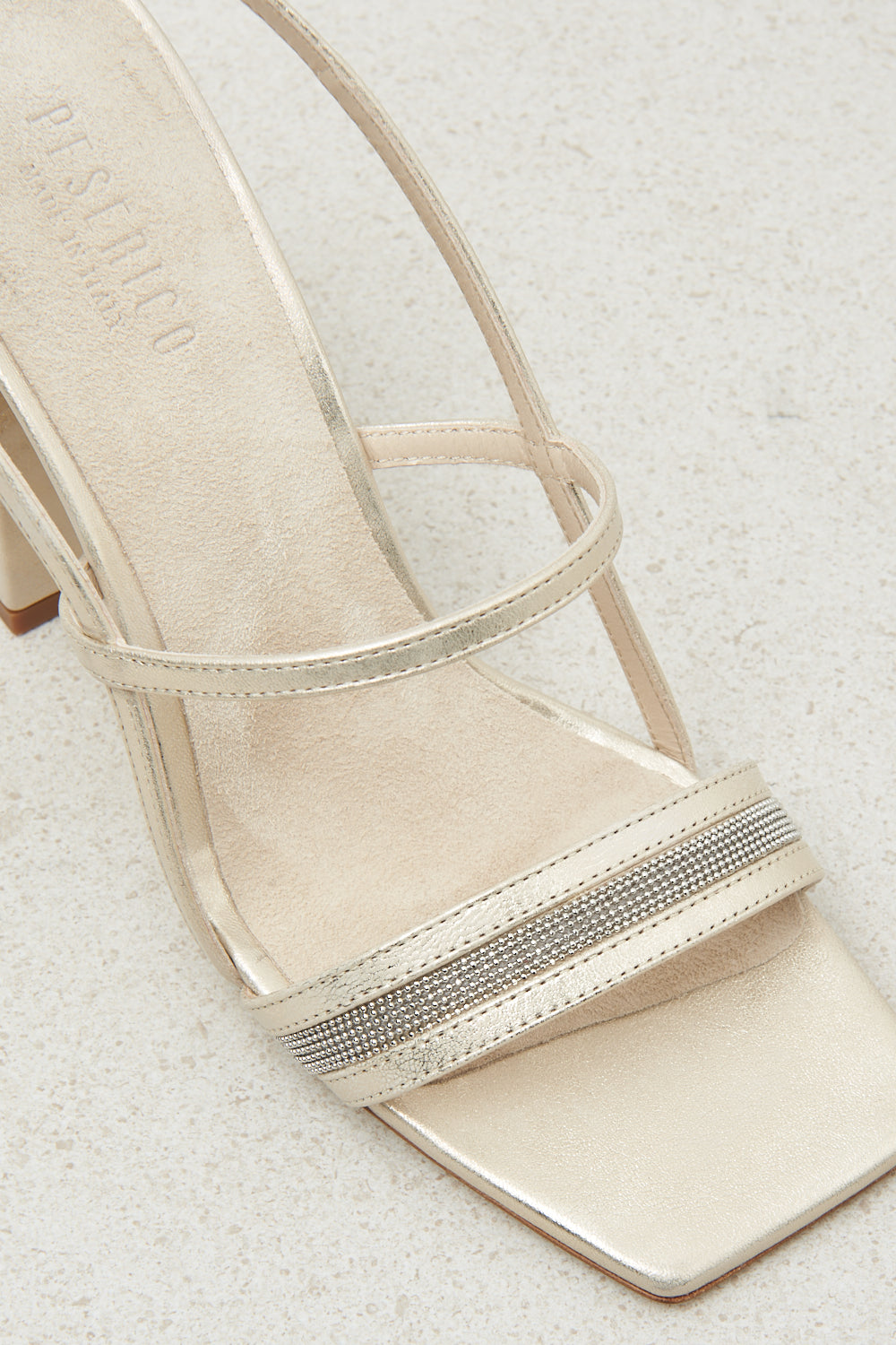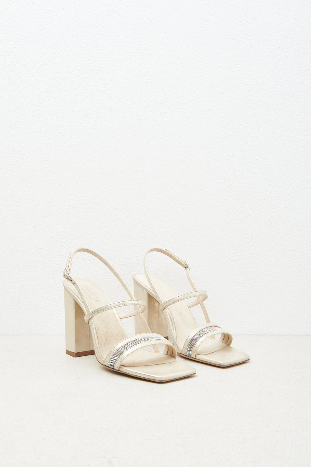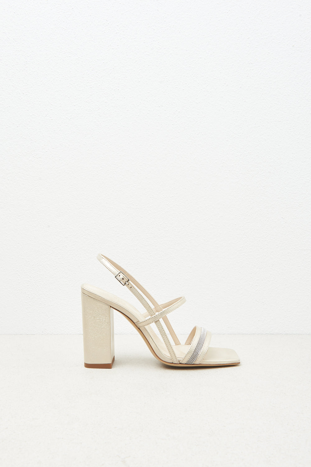 Peserico – Heeled leather sandal with Punto Luce – Quartz sand