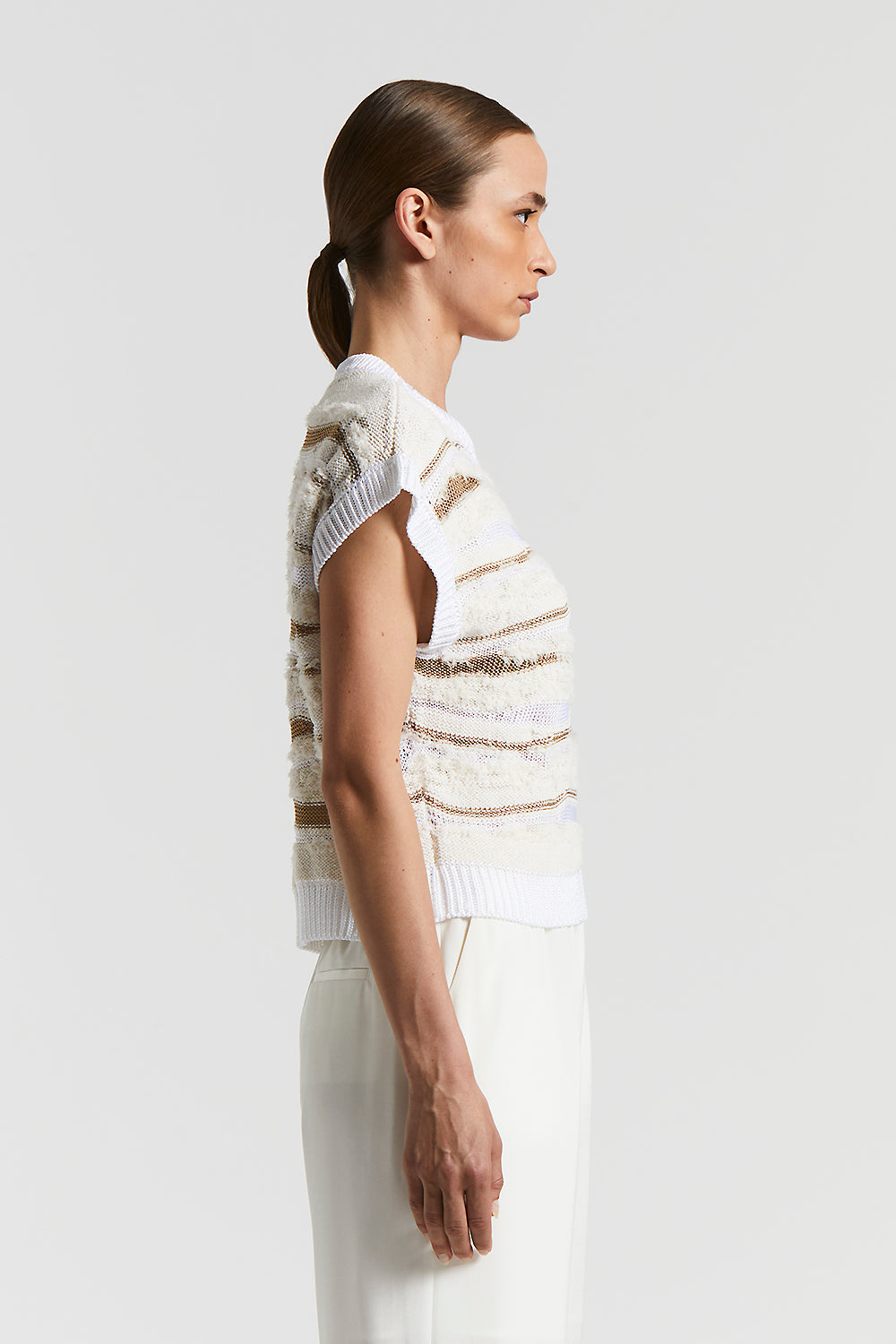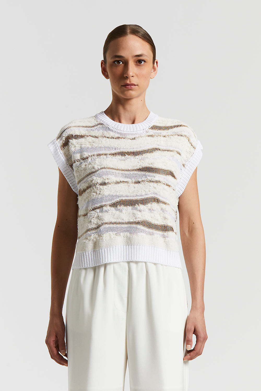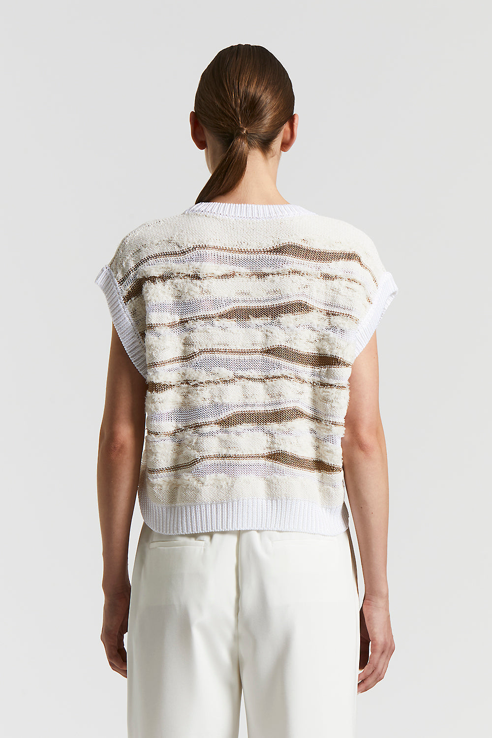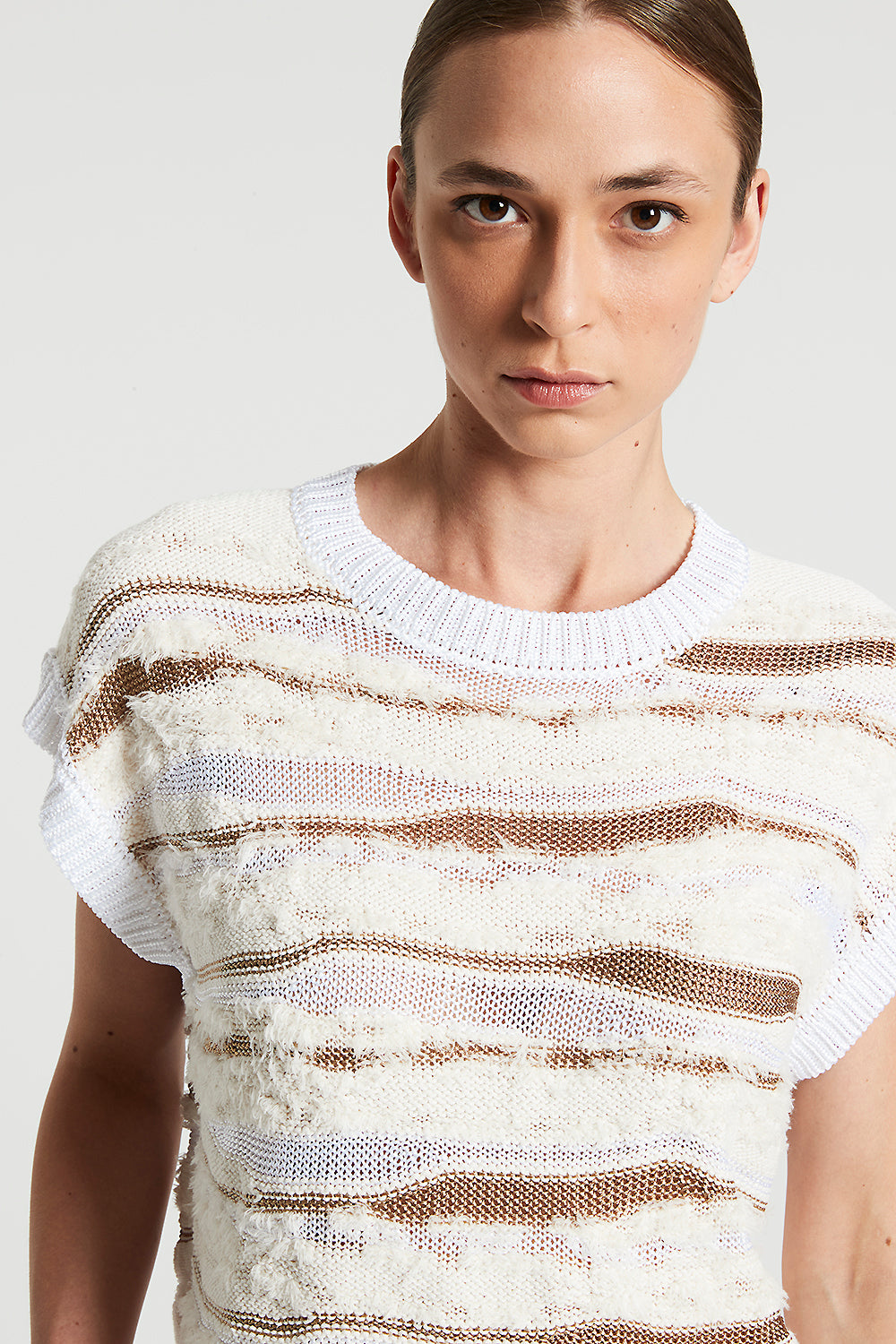 Peserico – Knitted cotton-viscose top – Quartz sand