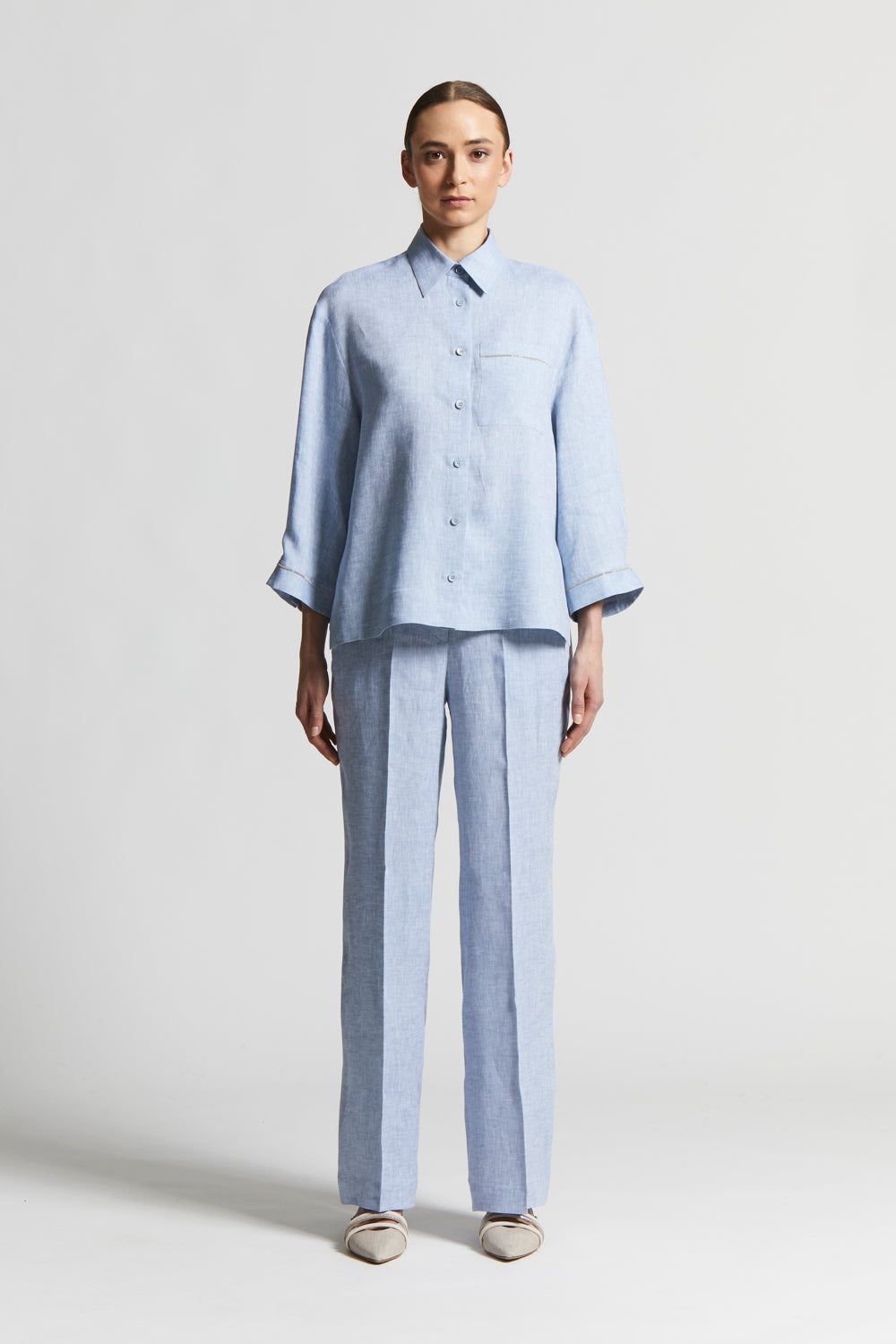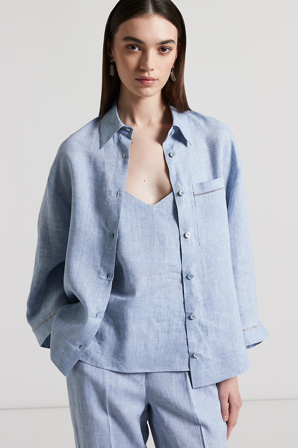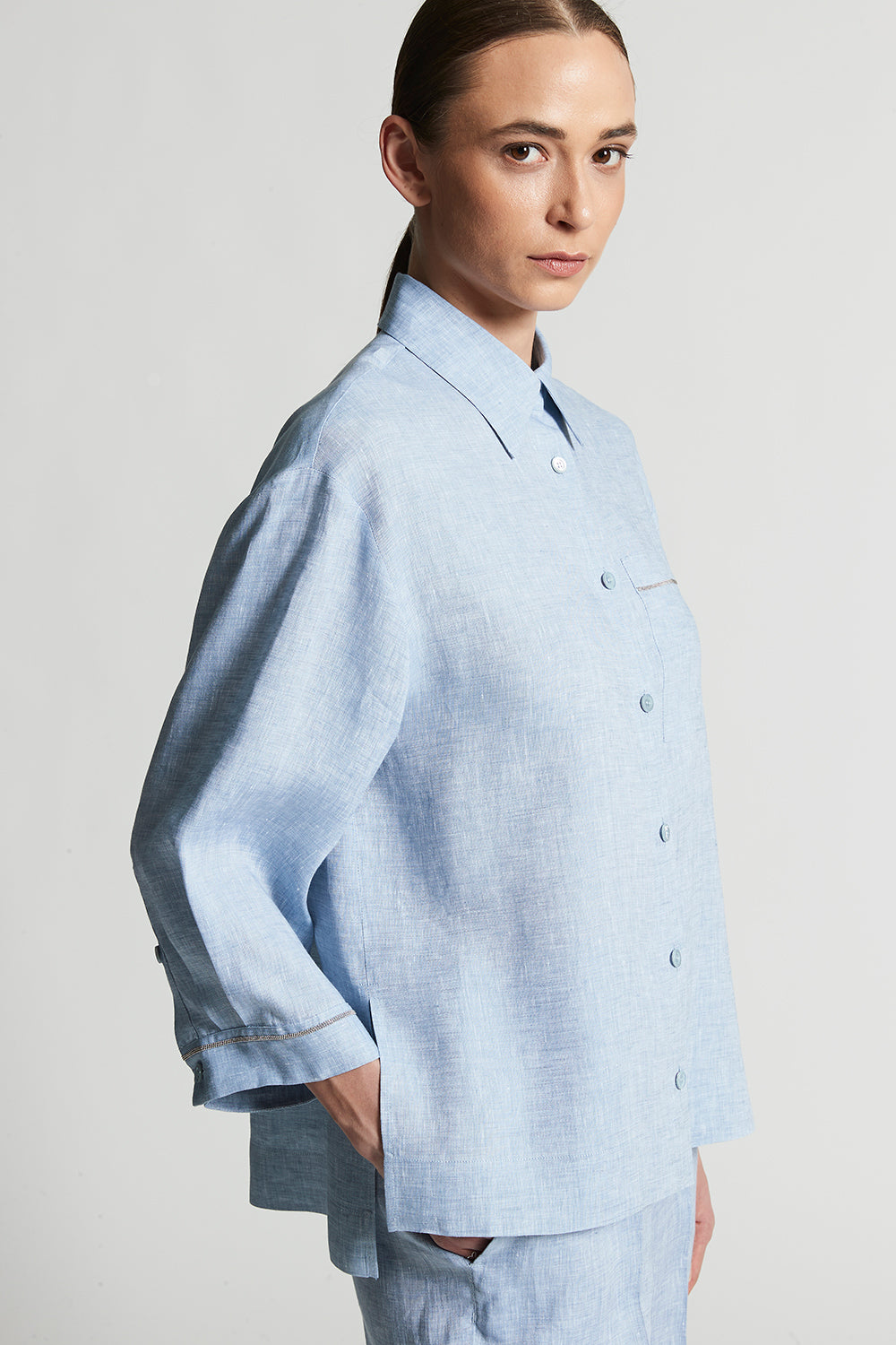 Peserico – Light and cool pure linen shirt – Sunrise blue