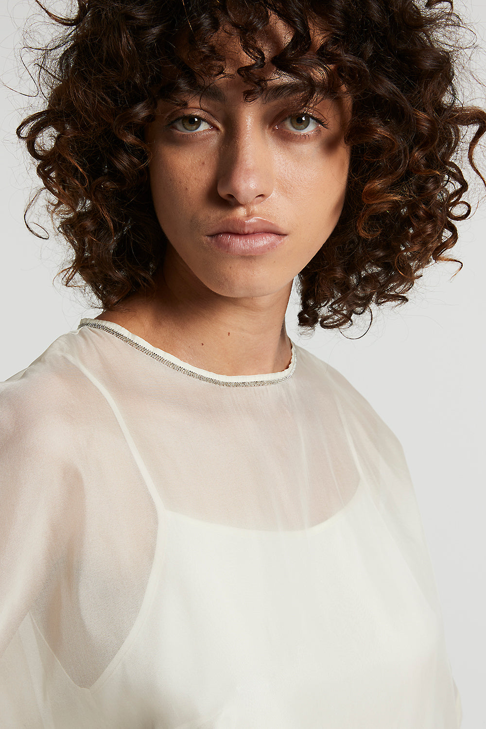 Peserico – Lightweight crepe-effect organza blouse – Quartz sand