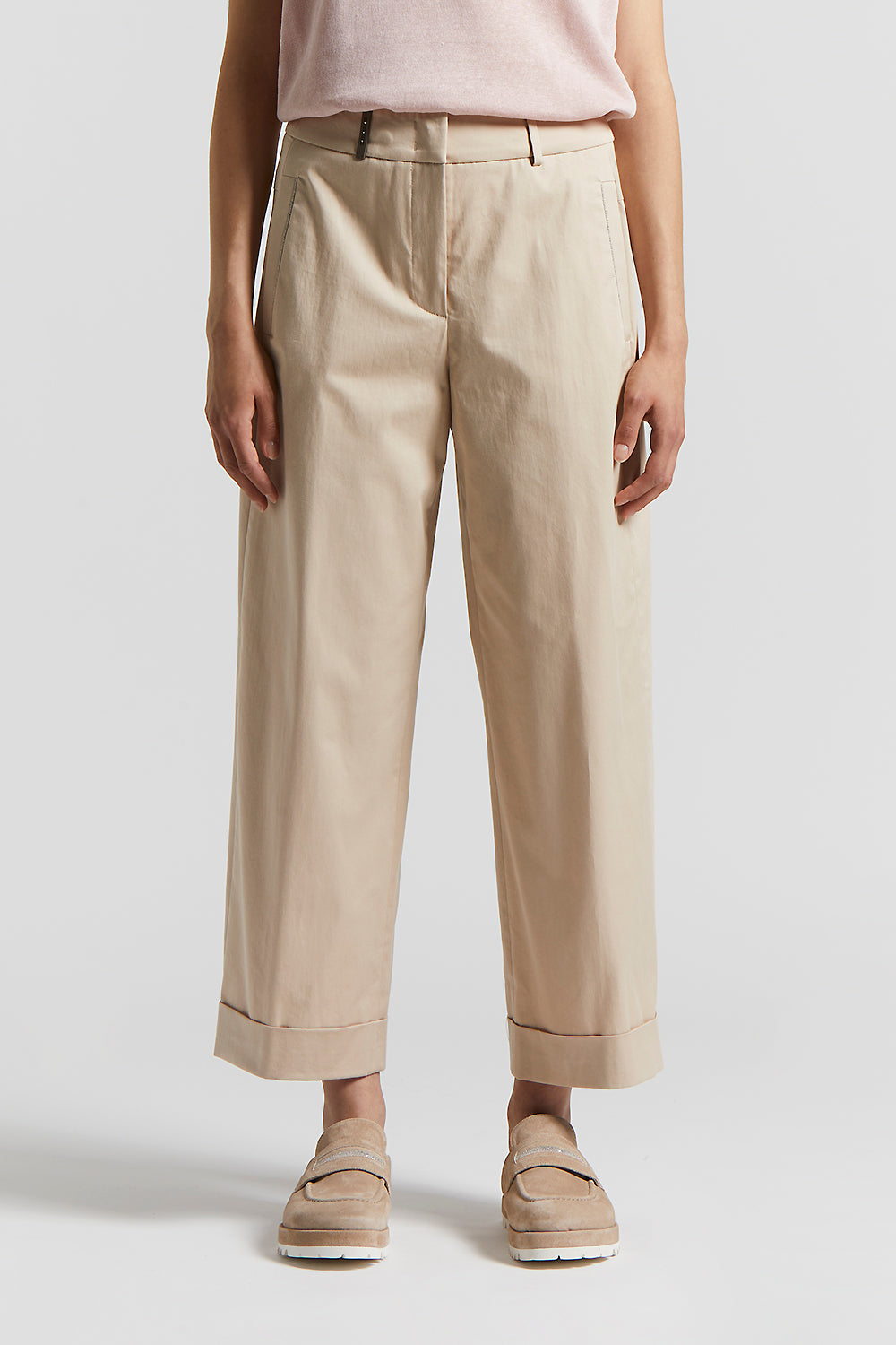 Peserico – Lightweight stretch cotton gabardine trousers – Amber beige