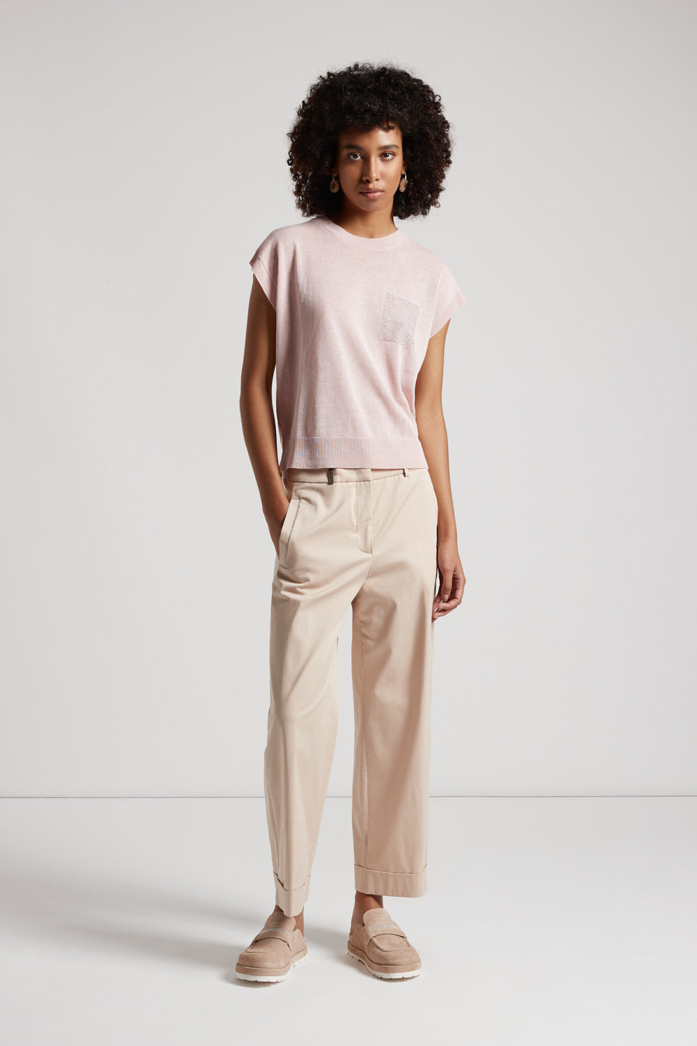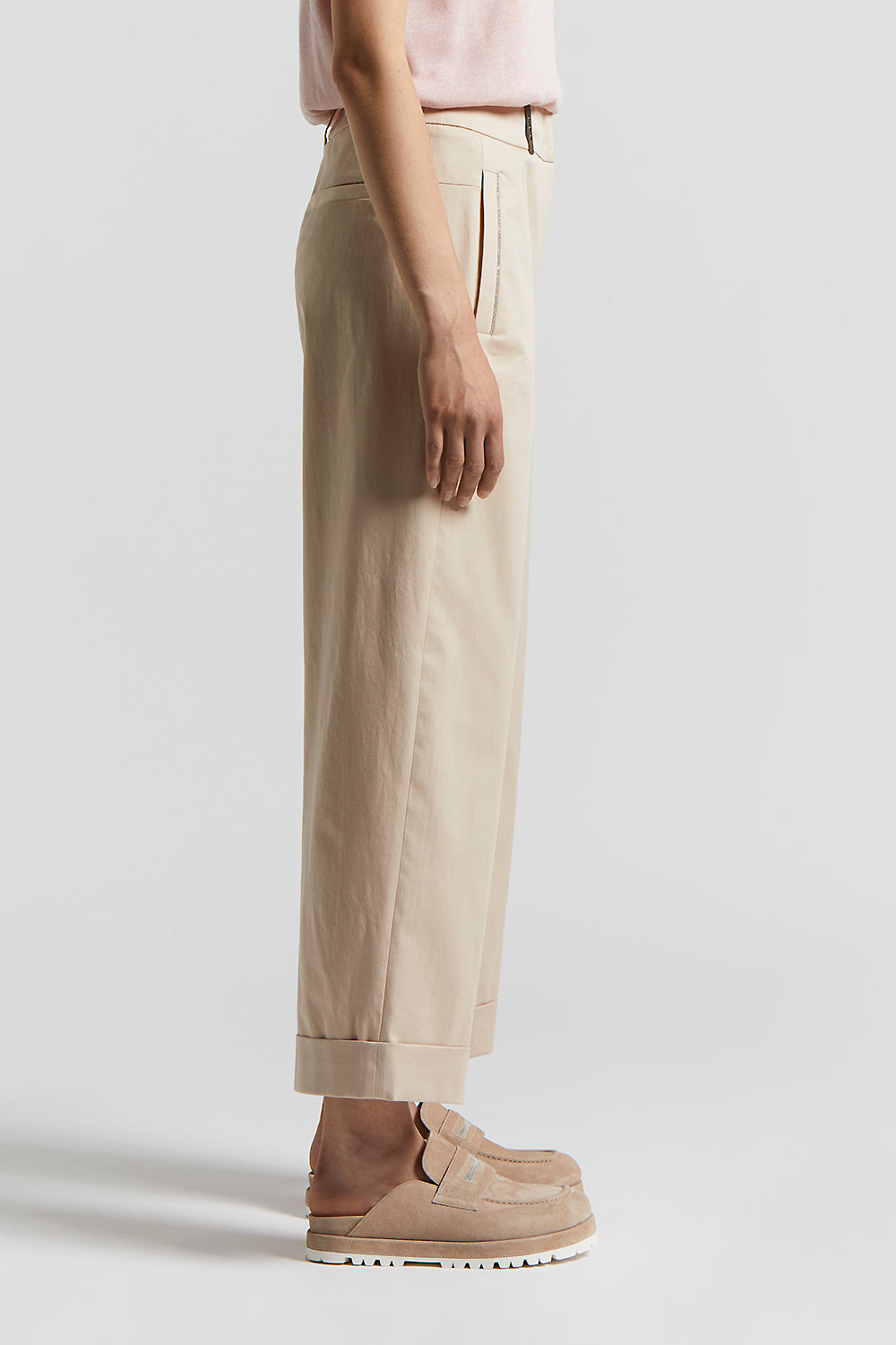 These straight trousers, made of lightweight combed stretch cotton gabardine, offer an elegant and fluid fit with a regular waist that defines the line.