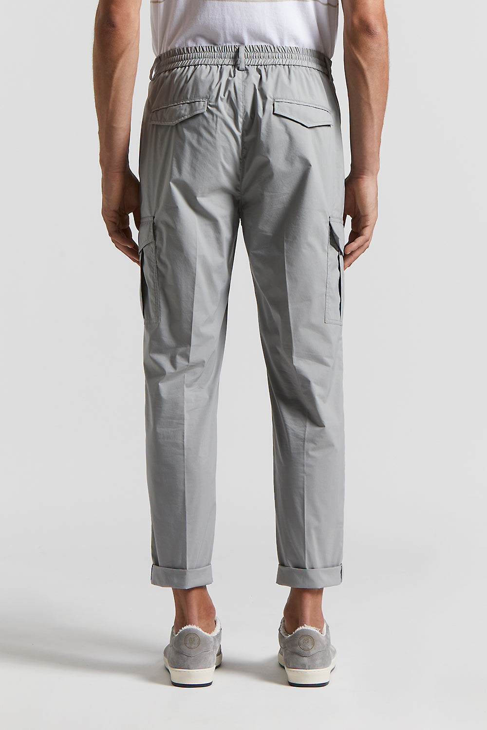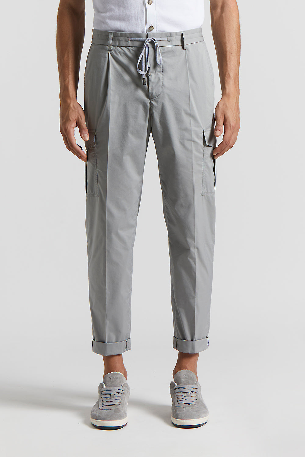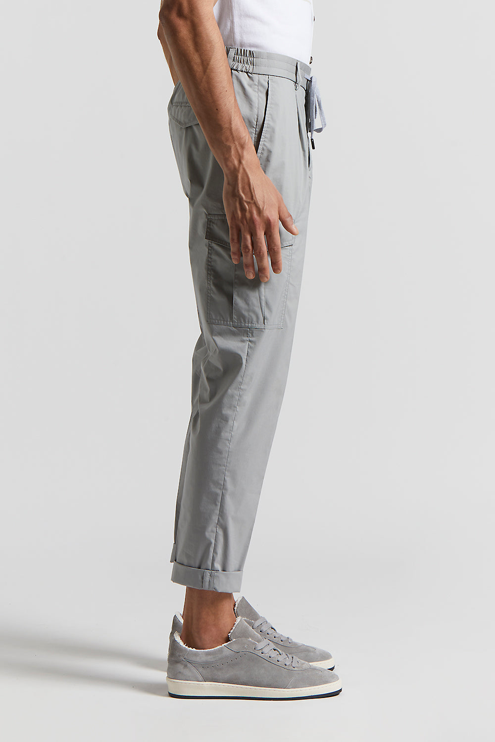 Redefining practicality, these joggers with patch pockets and elasticated drawstring waist, embody a relaxed, yet refined fit, with a pleat that adds a touch of elegance.Light stretch cotton-nylon wit…