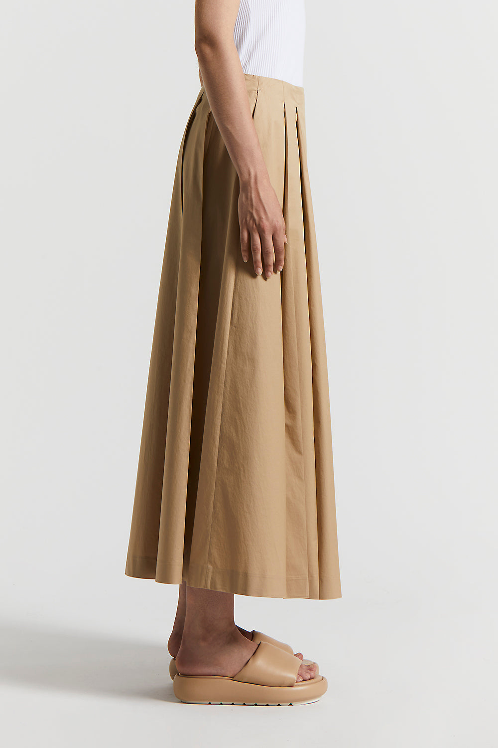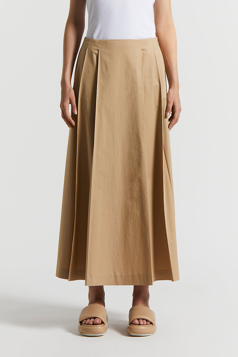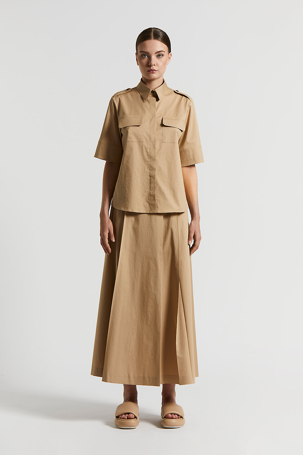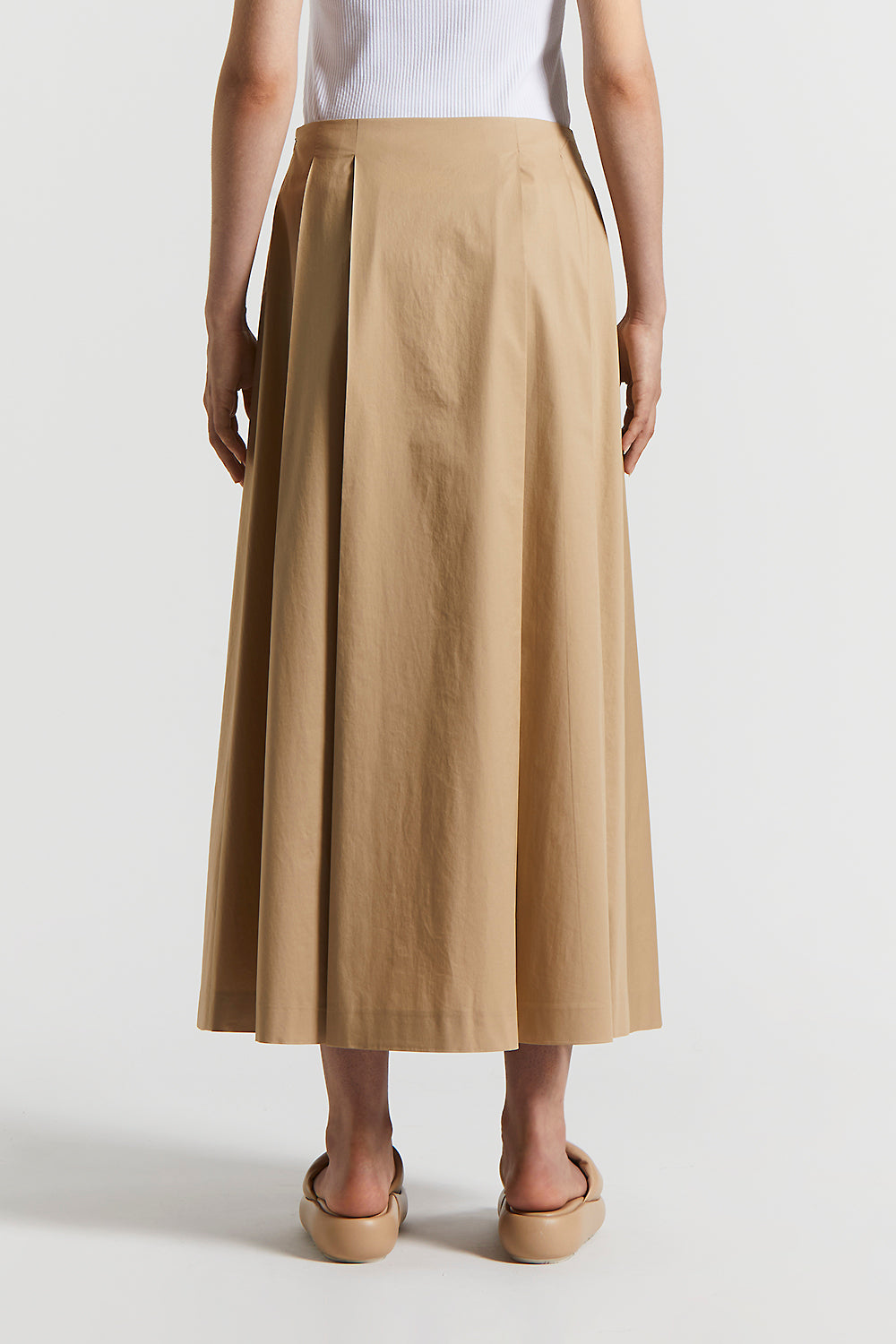 Peserico – Lightweight stretch cotton satin long skirt – Desert