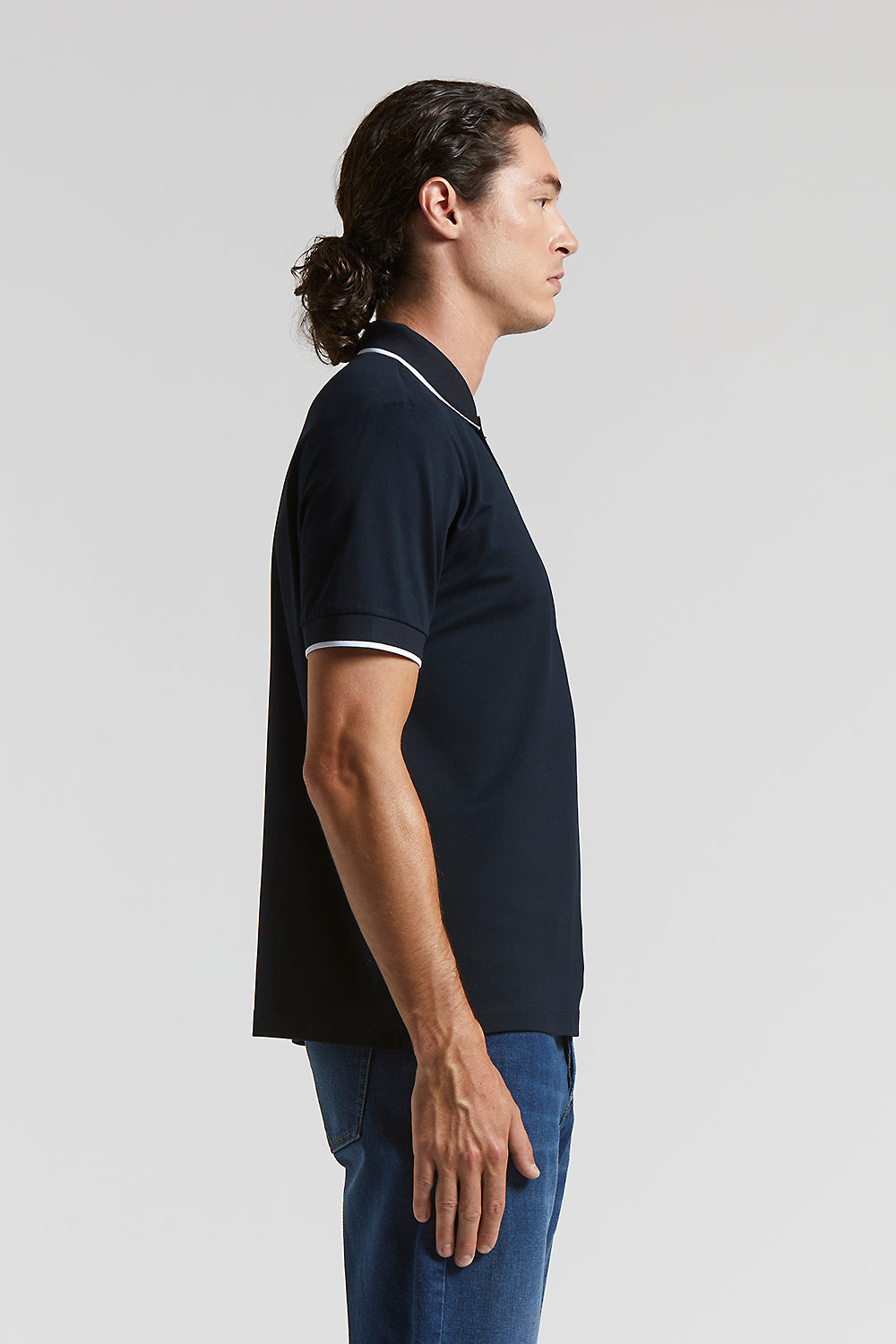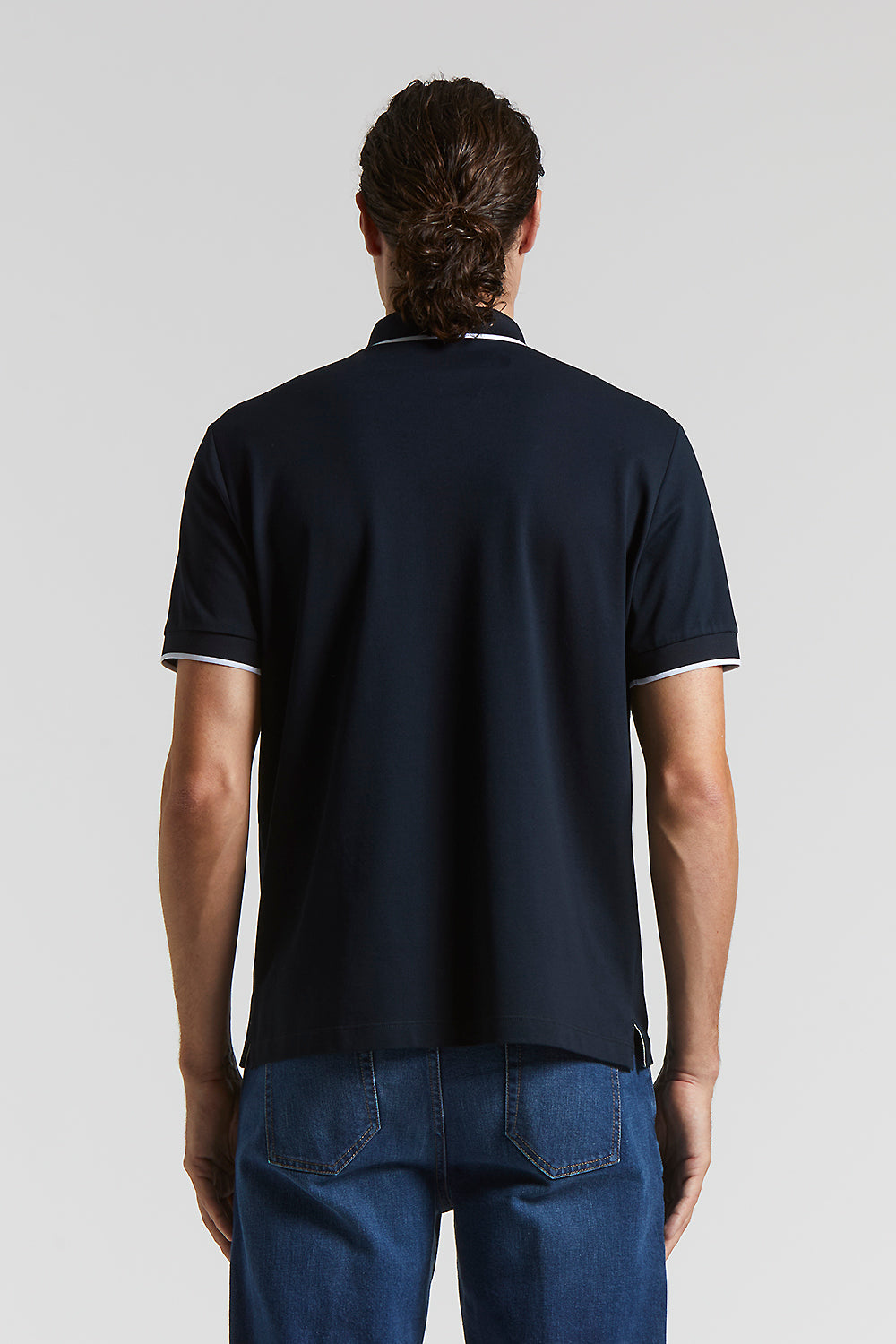 Classic and elegant, this piqué polo shirt with three-button fastening is made of fine, lightweight Supima cotton. Ideal for spring and summer.The contrasting stripe detail on the collar and ribbed s…