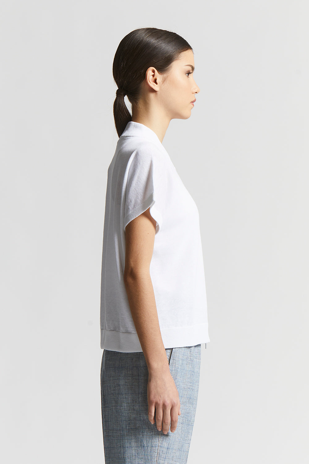 The short kimono sleeves and practical visible zip fastening create a modern and versatile style, the ideal choice to complete any spring look with a touch of style and class.