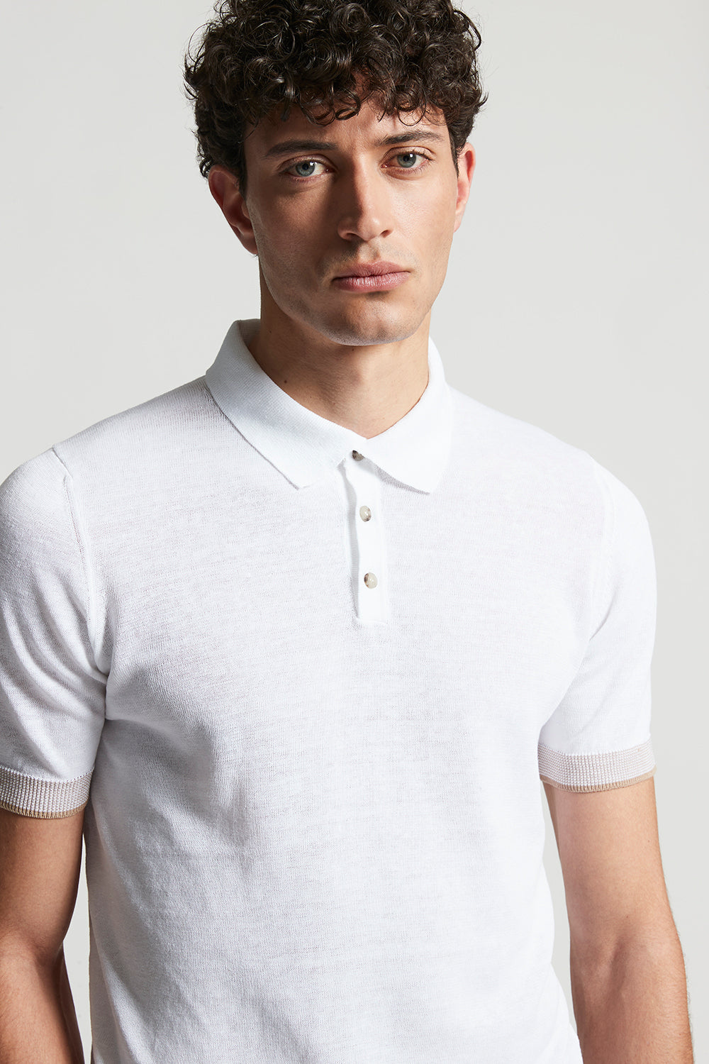 Peserico – Linen and cotton crepe polo shirt – Pure White