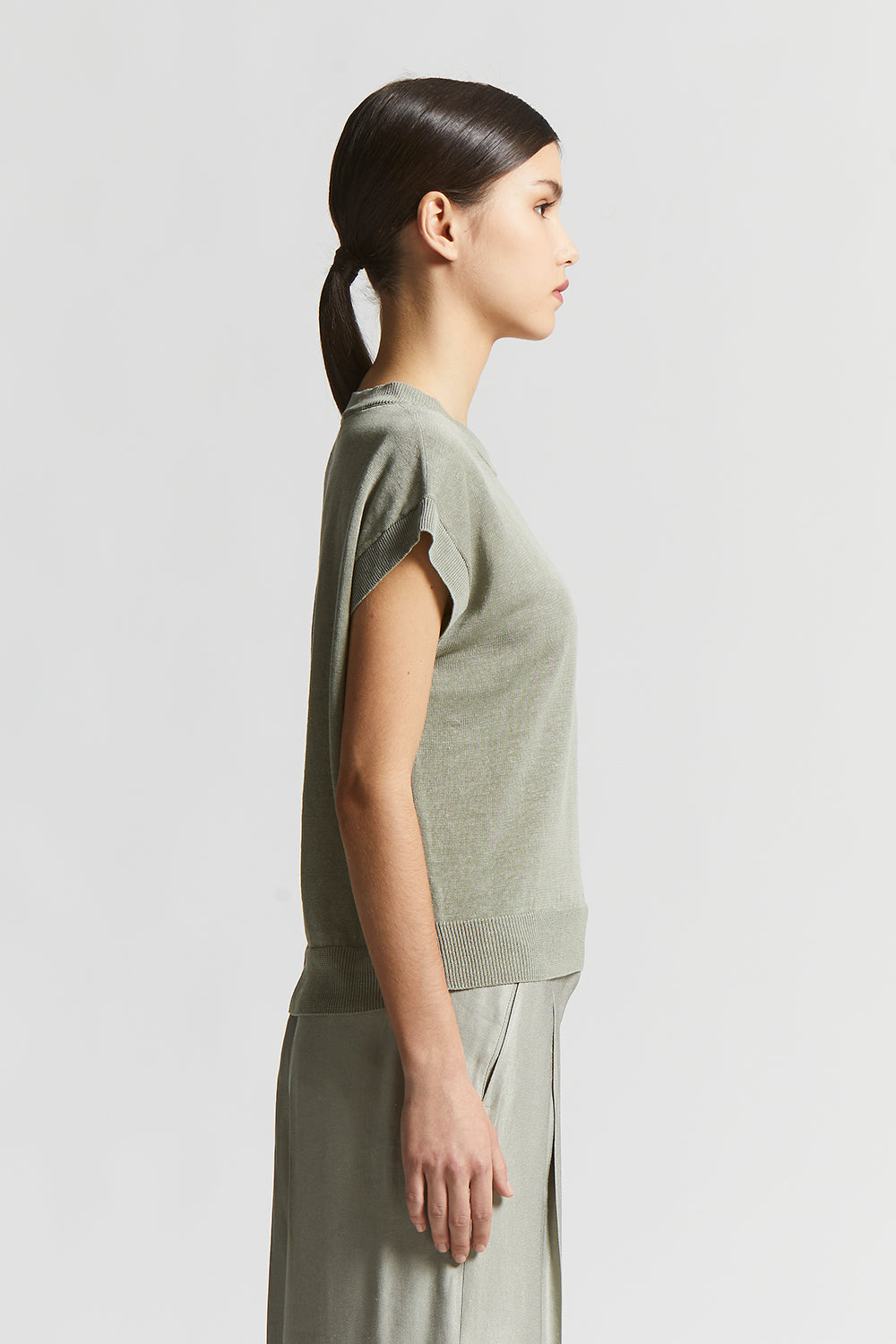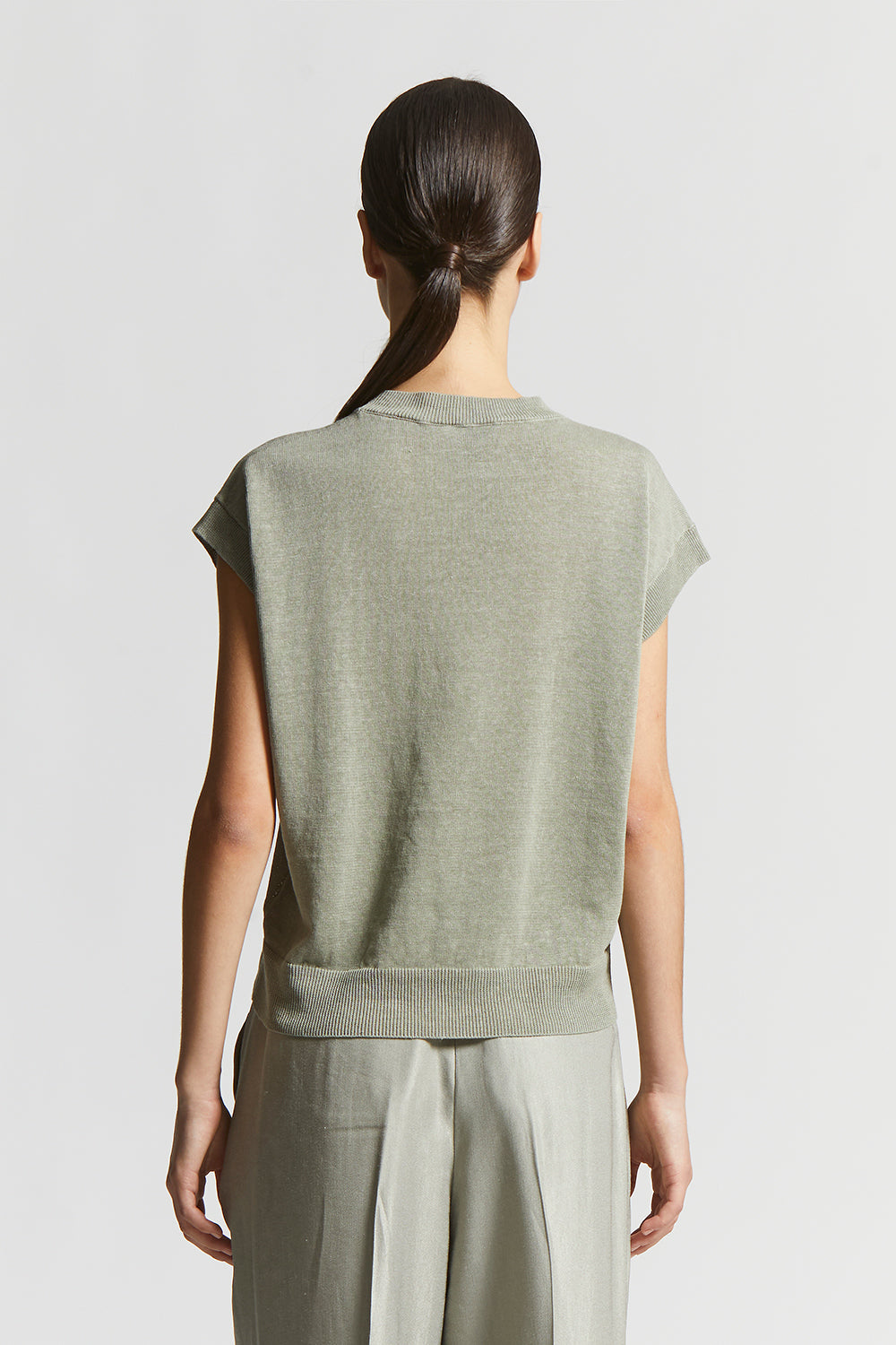 Ideal for a spring or summer day, this kimono-style sweater is made of fine linen and cotton yarn, which ensures cool breathability.