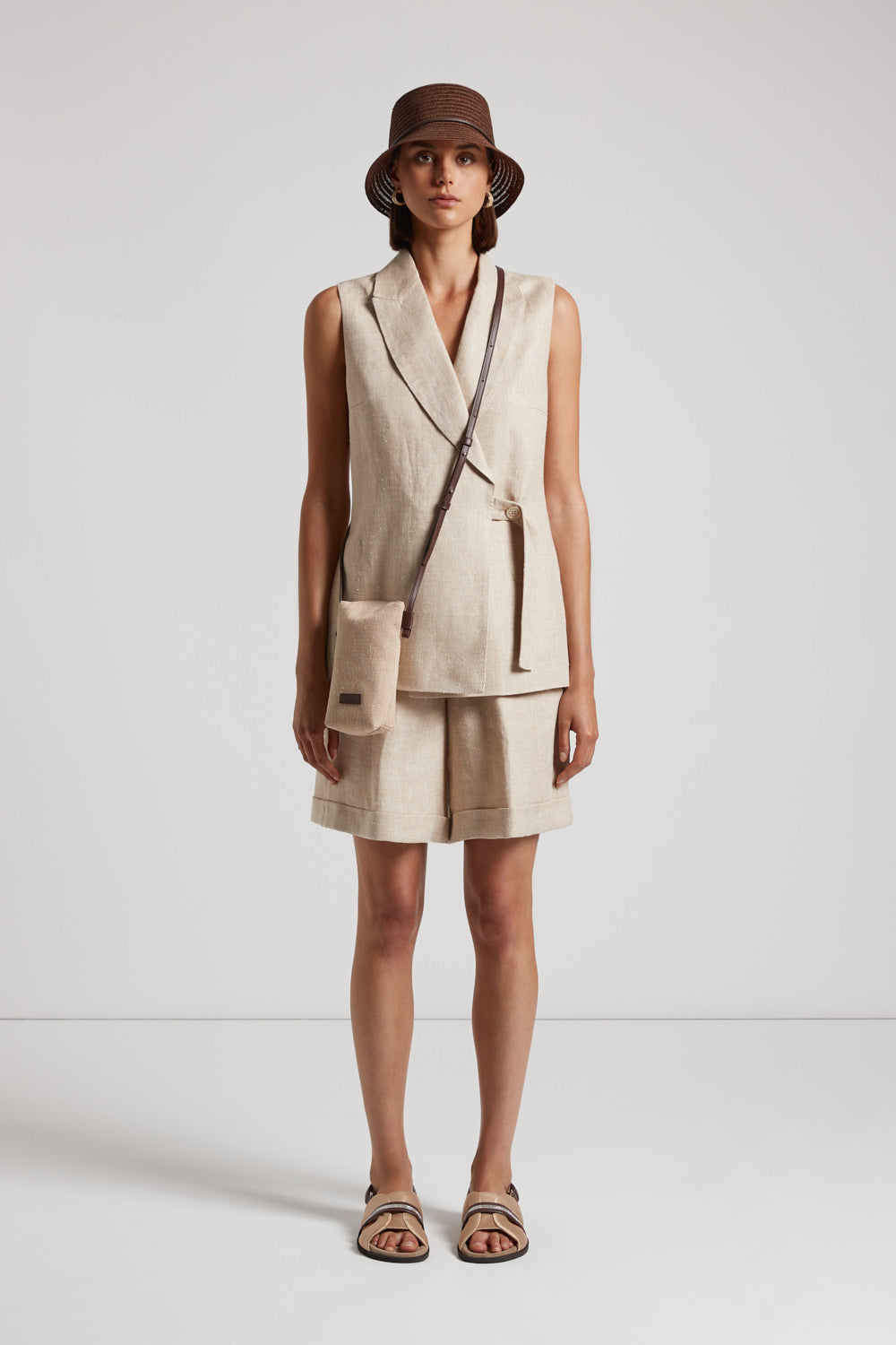 Peserico – Linen and silk double-breasted waistcoat – Amber beige