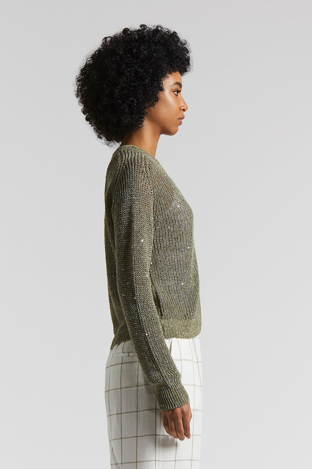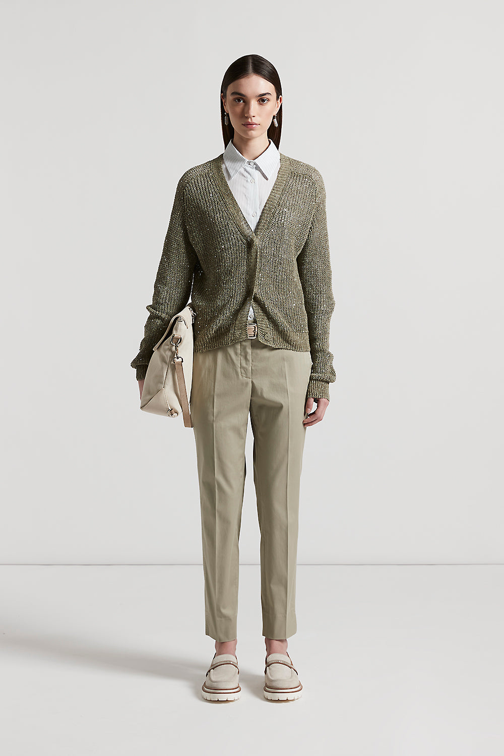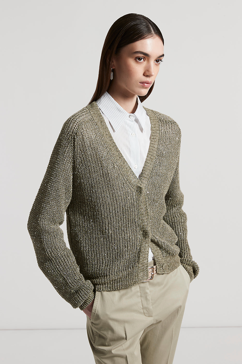 Peserico – Linen cardigan with sequins – Eucalyptus
