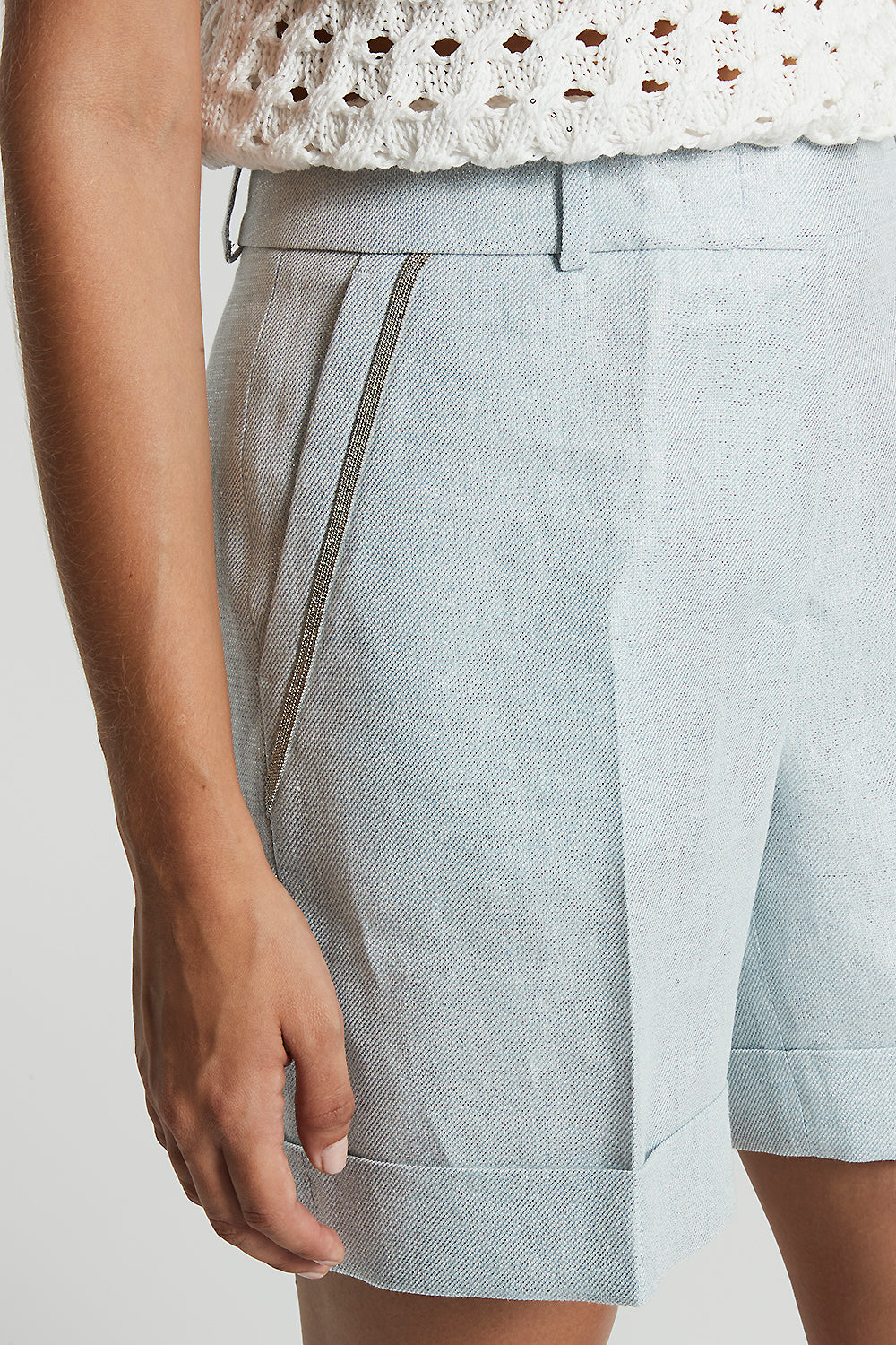 Peserico – Linen cotton Lurex fabric shorts – Crystal blue