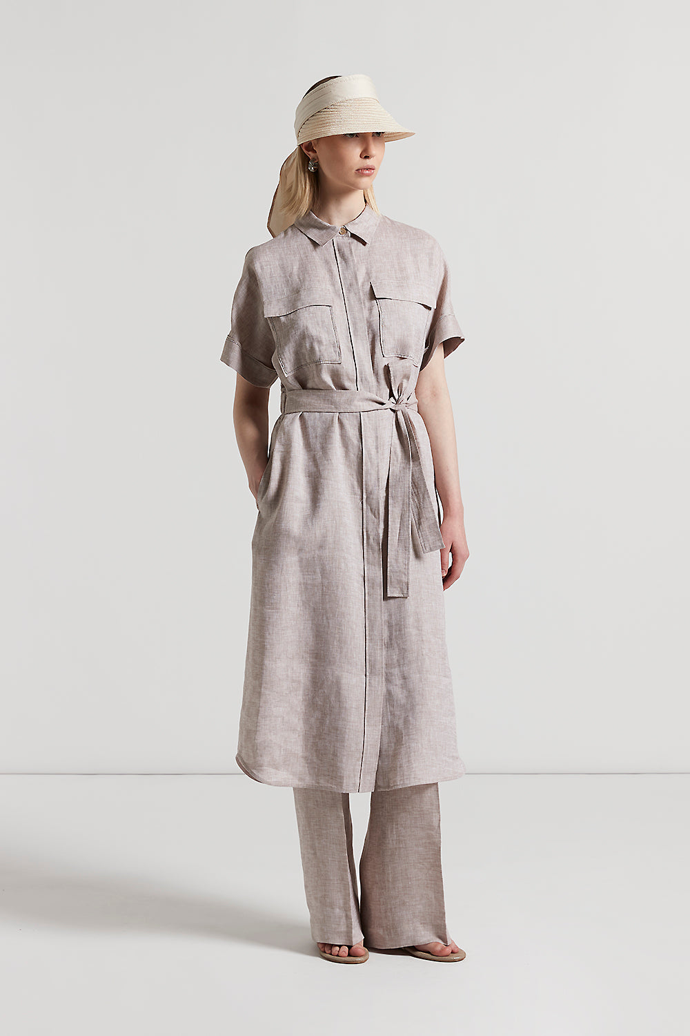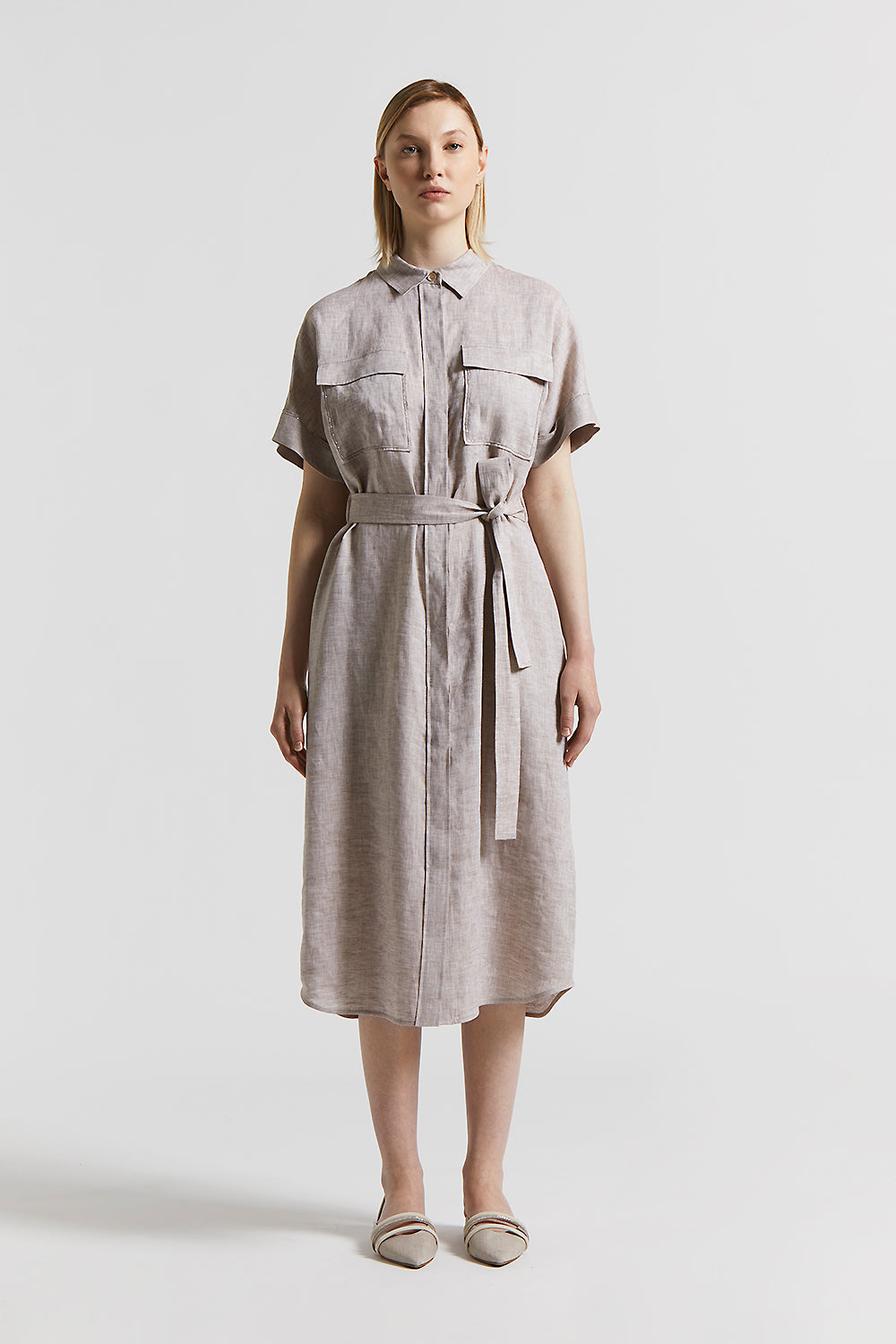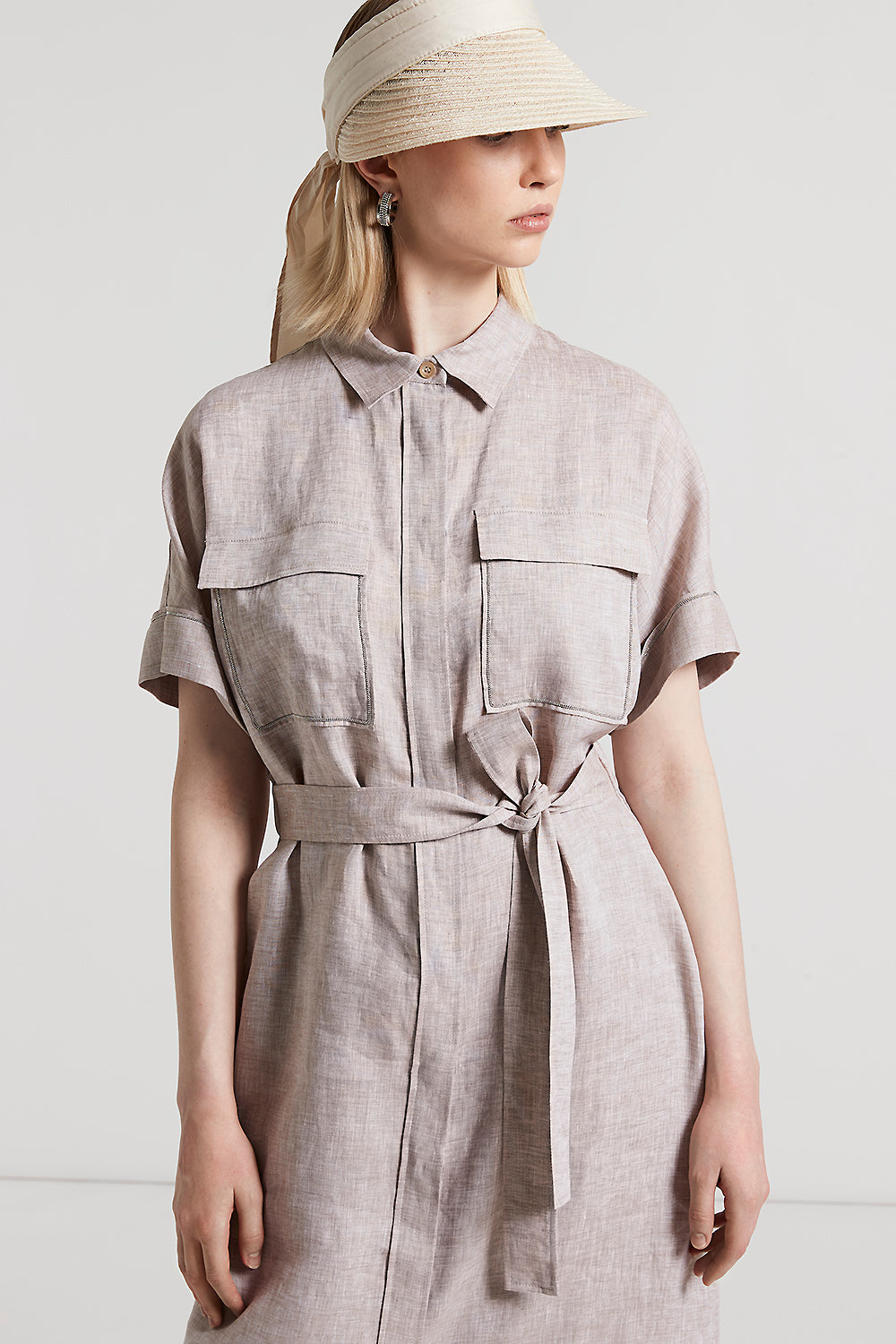 The lightness of the linen and the classic style of the dress guarantee an elegant and fresh summer look.