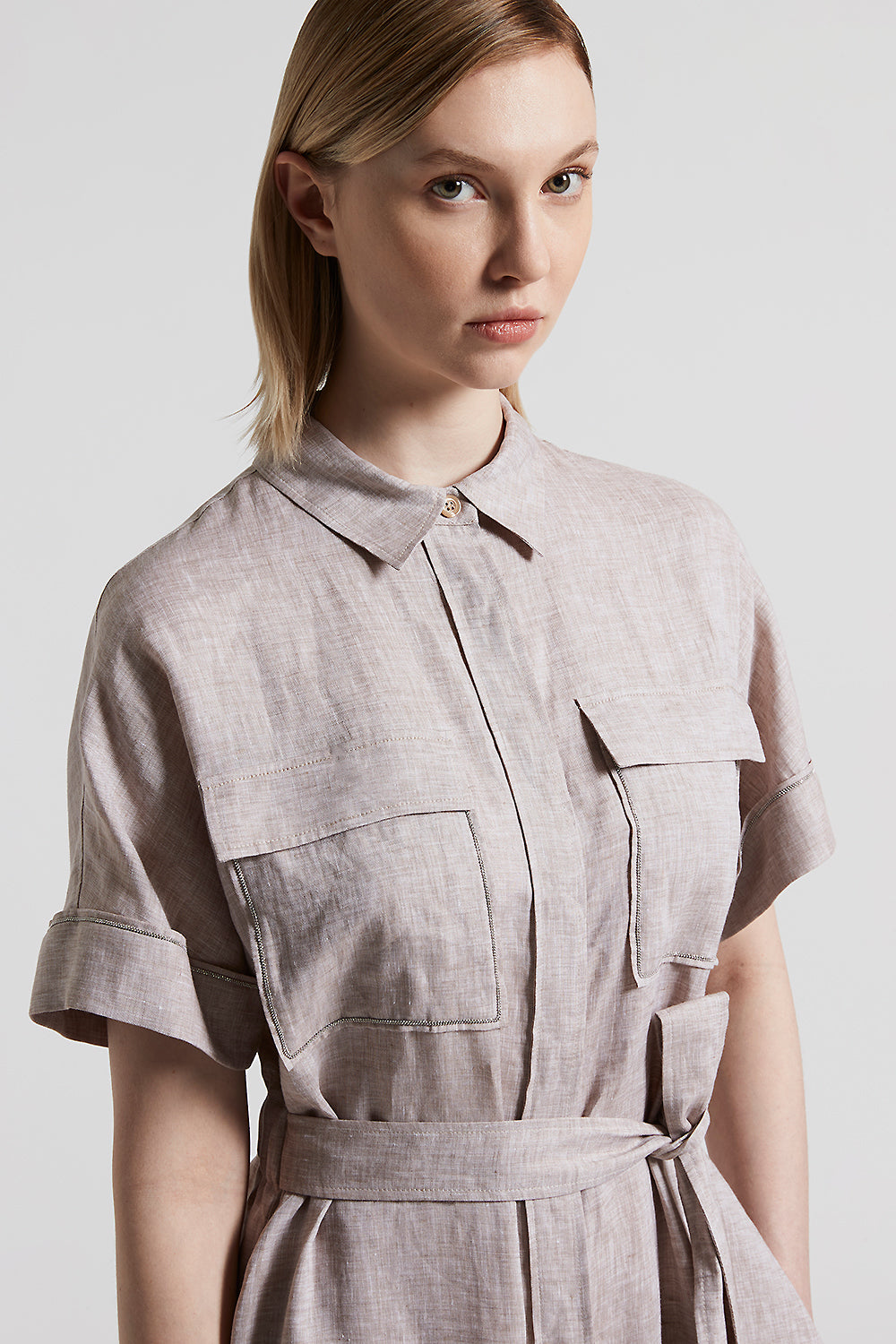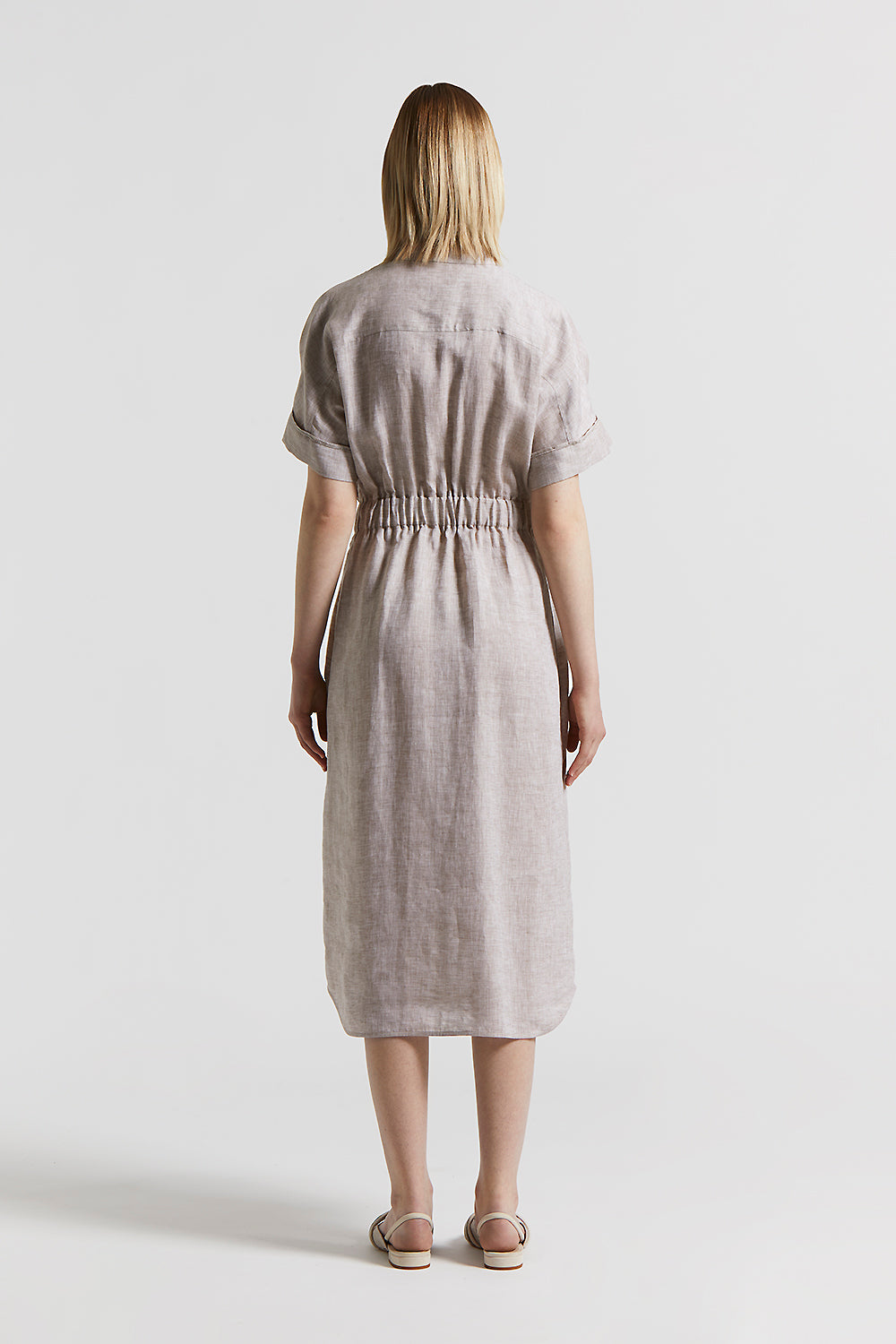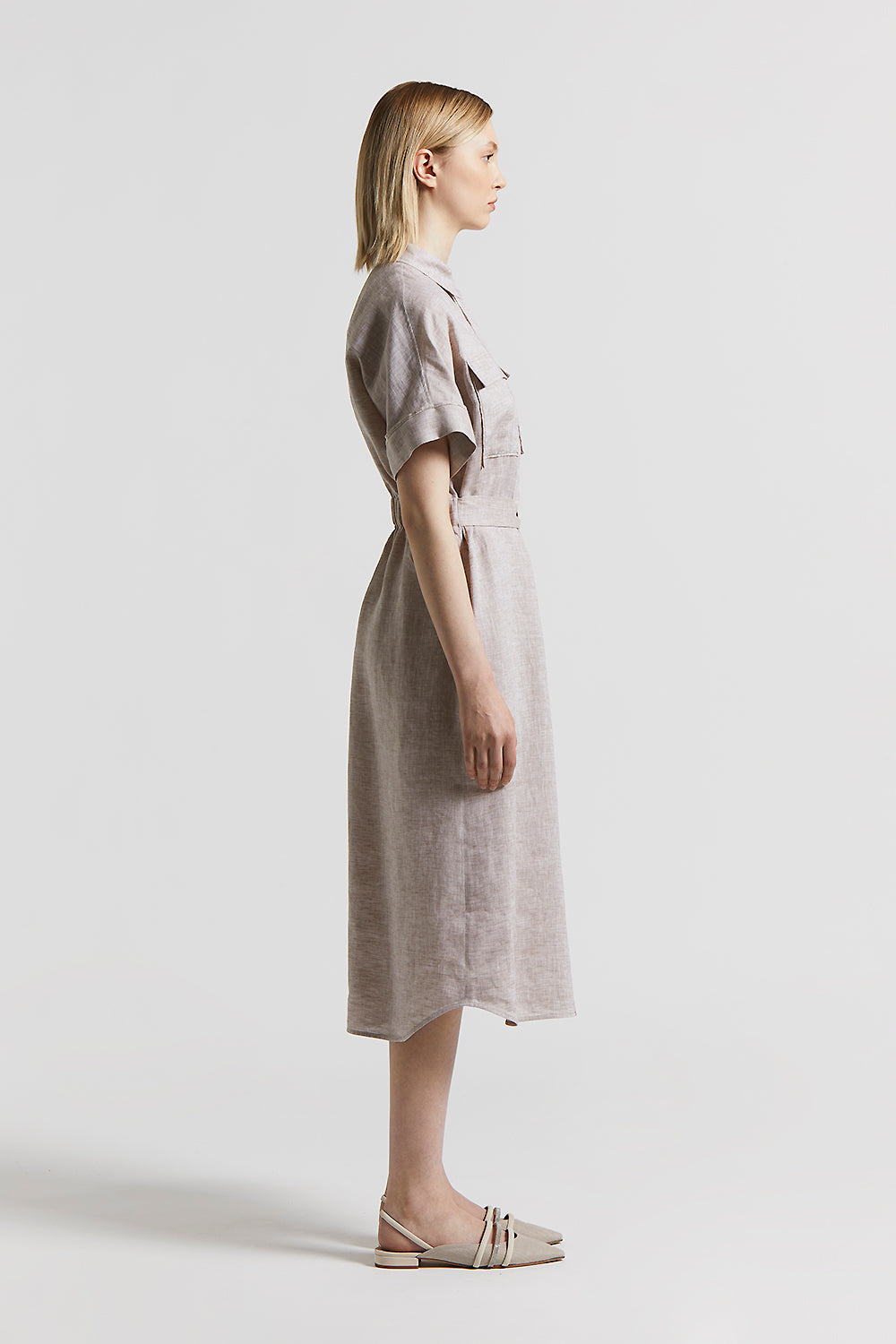 The lightness of the linen and the classic style of the dress guarantee an elegant and fresh summer look.