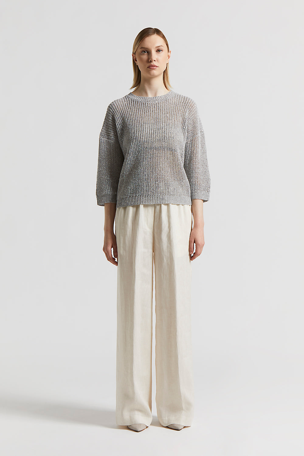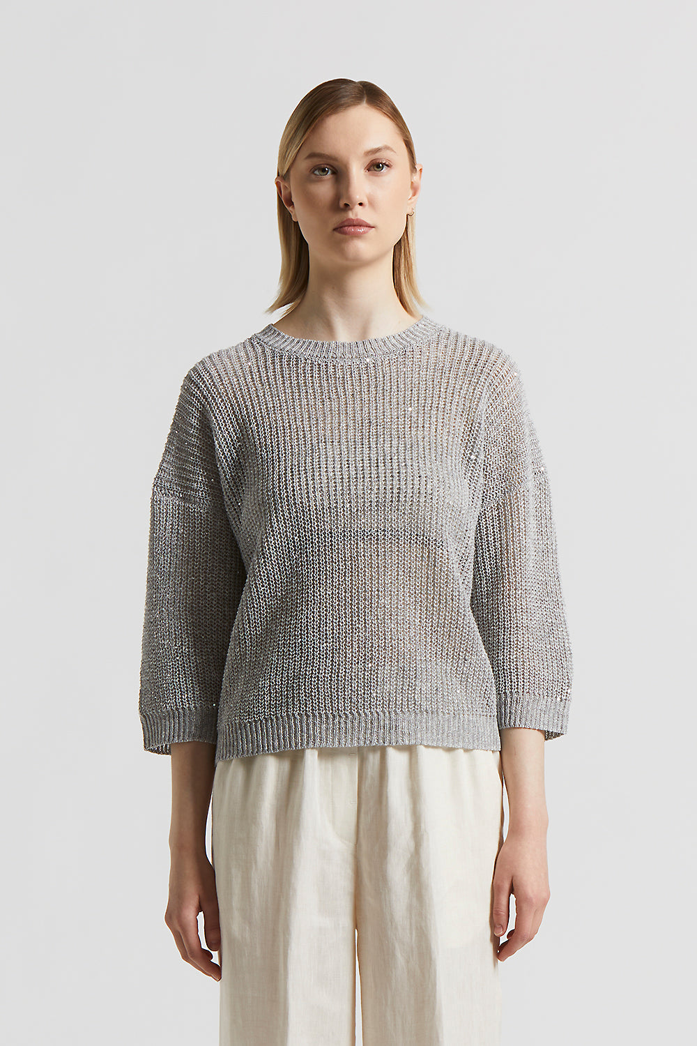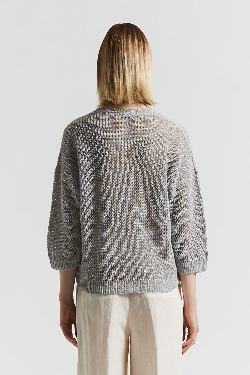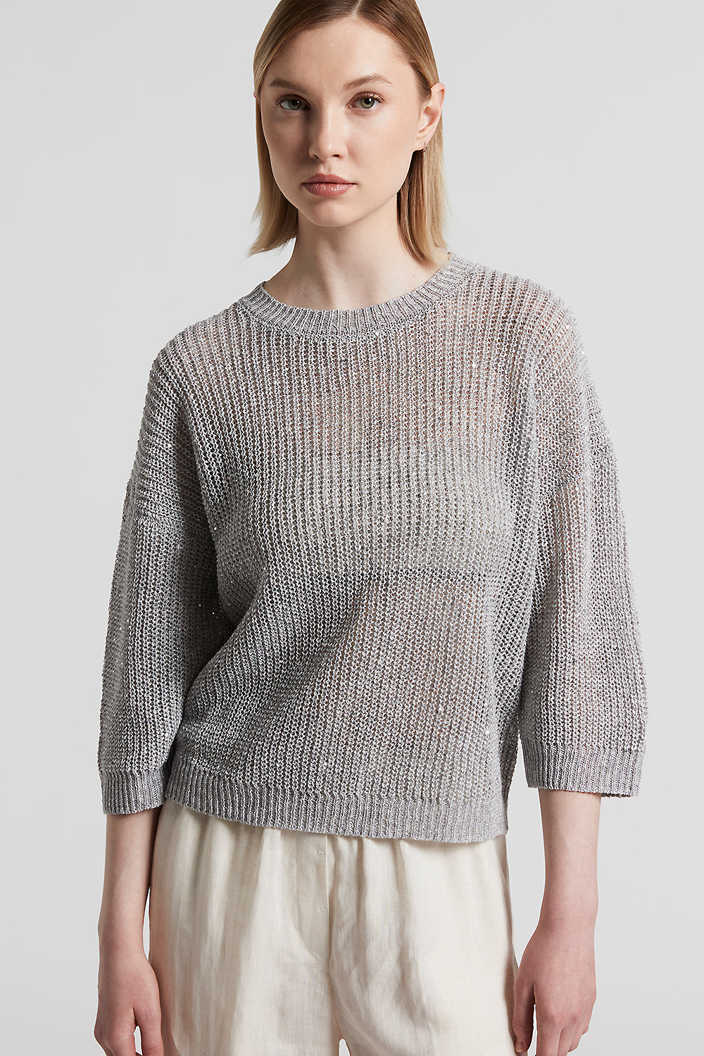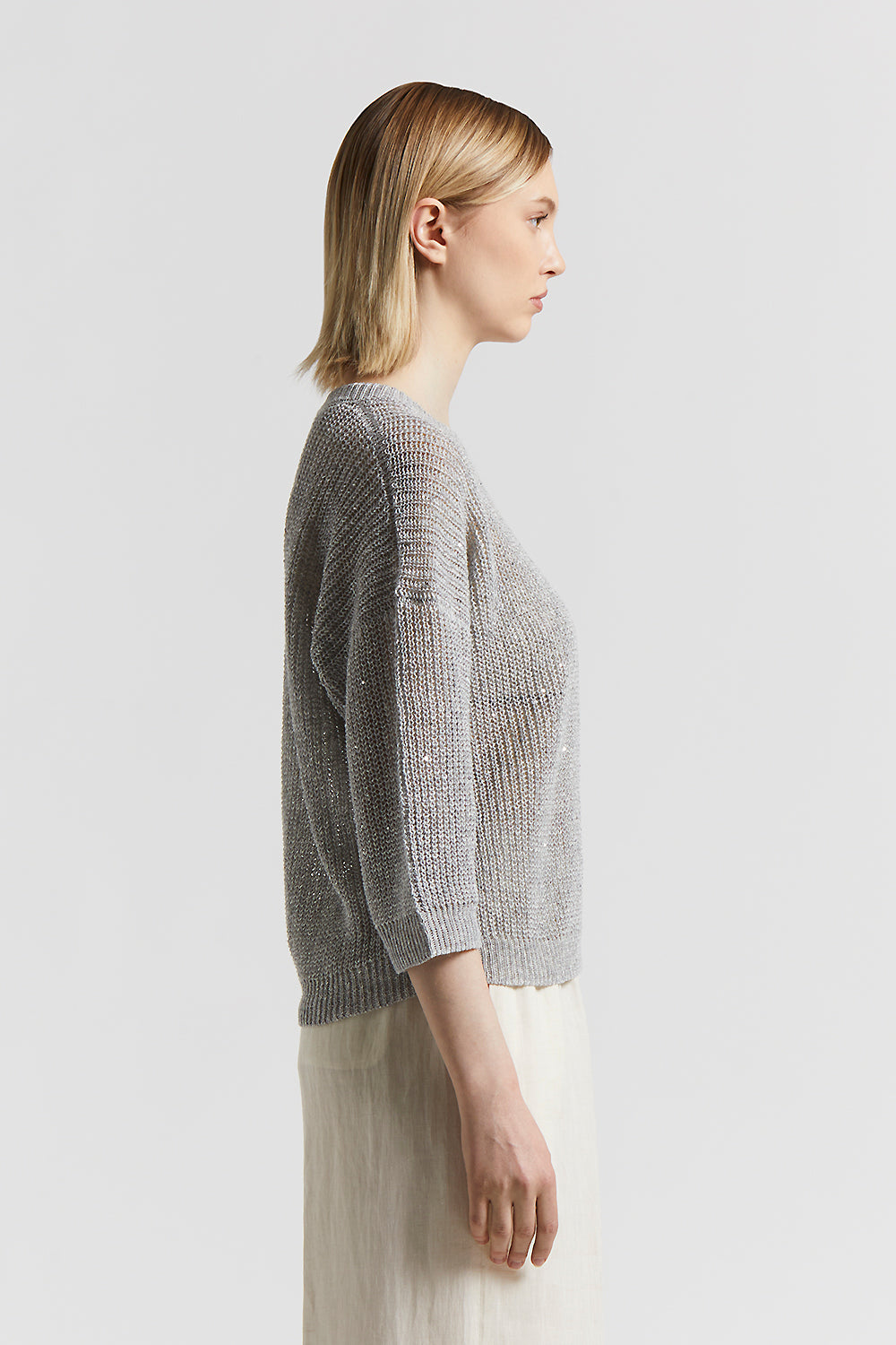 Peserico – Linen tricot sweater with sequins – Lunar gray